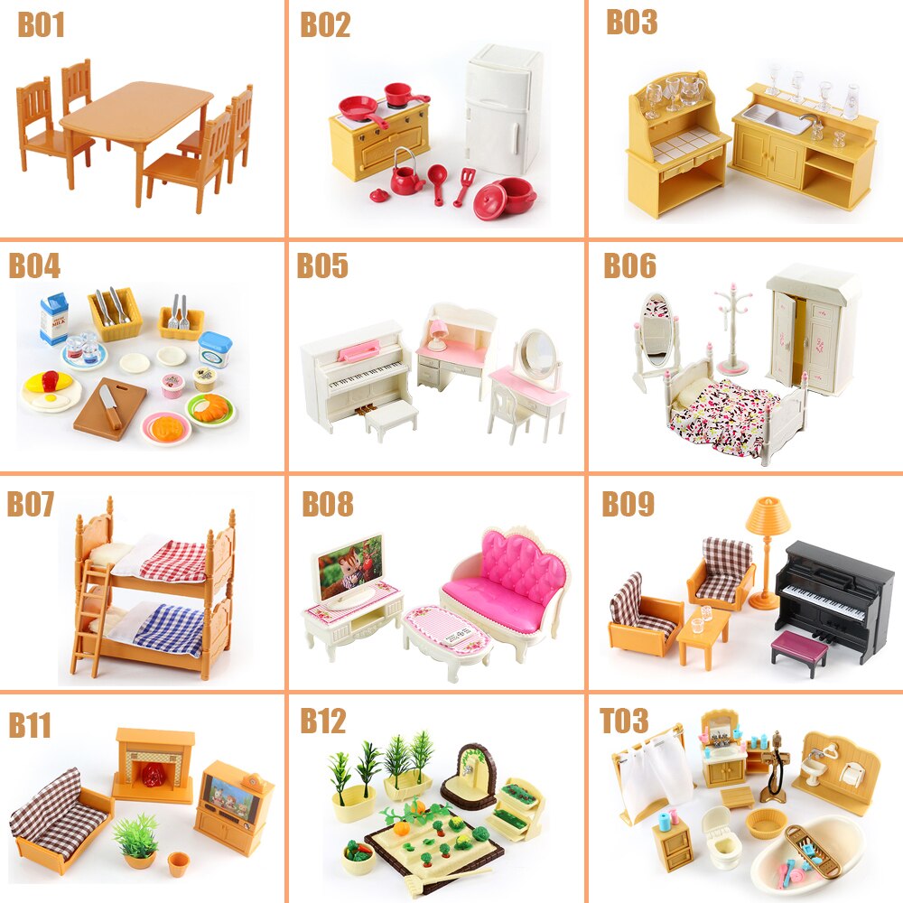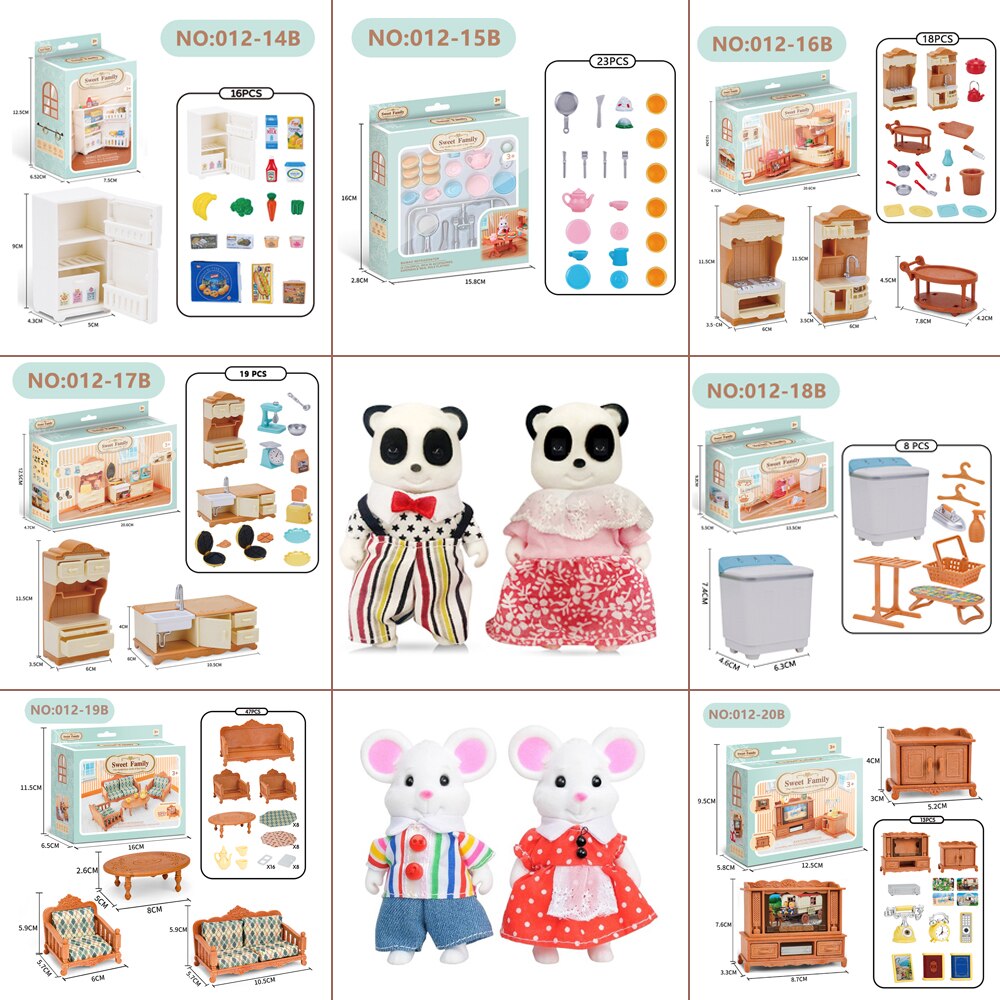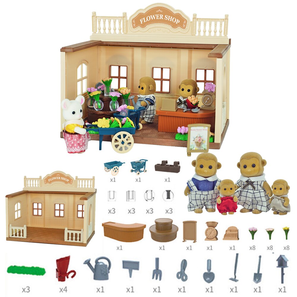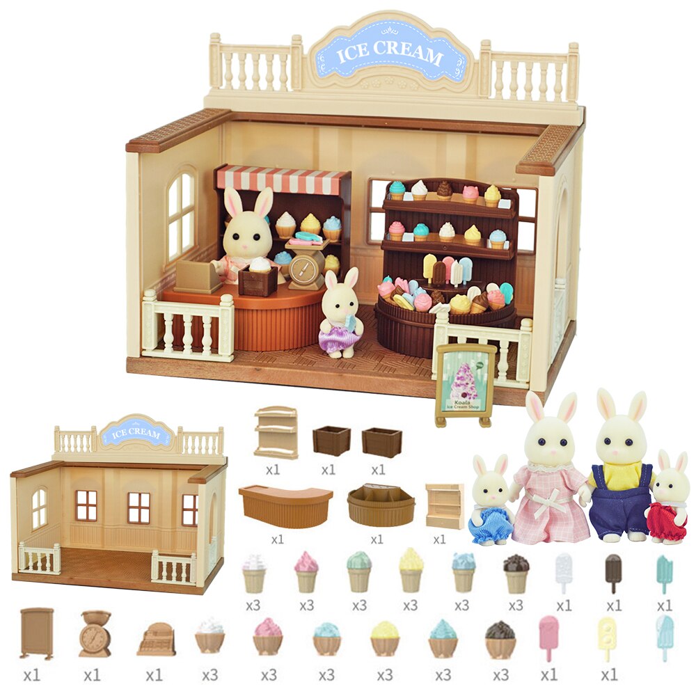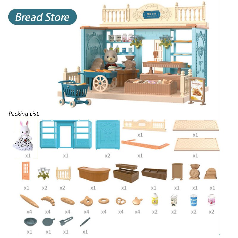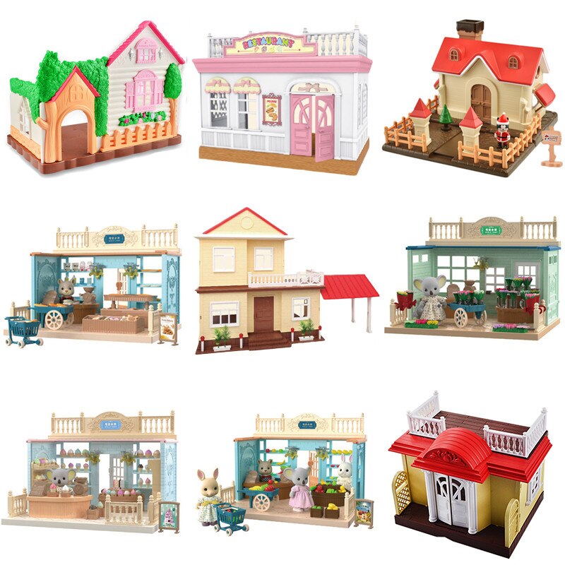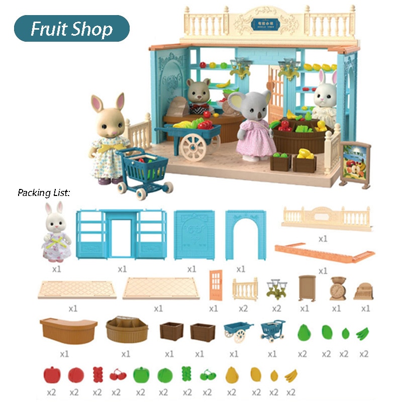 1/12 Forest Animal Family Wing Christmas House Ice Cream Bread Flower Fruit Shop Bunny Dollhouse Girl Play House Toy