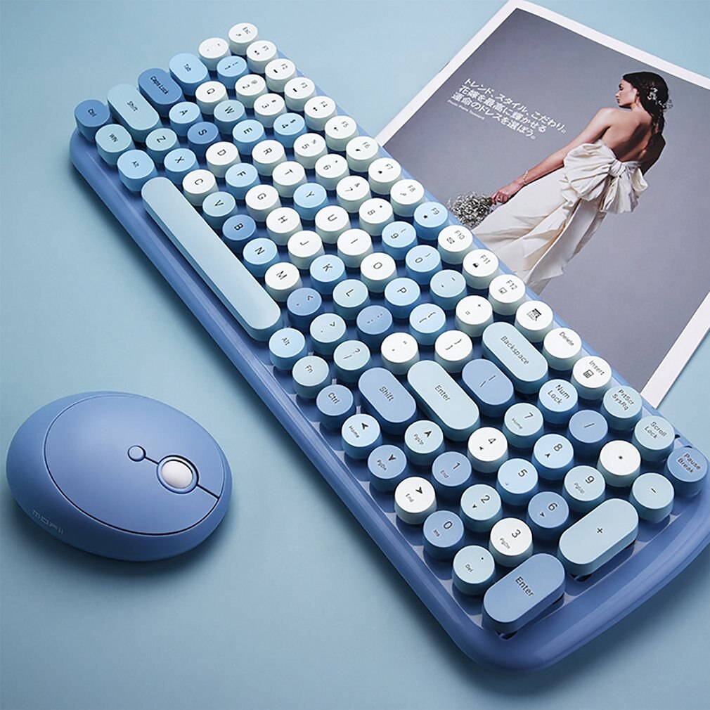 100 Key Wireless Keyboard Mouse Kit 2.4G Keypad Mouse Set Mute for Women Girl Mini Cute Macaron Keyboard and MouseFor PC Laptop