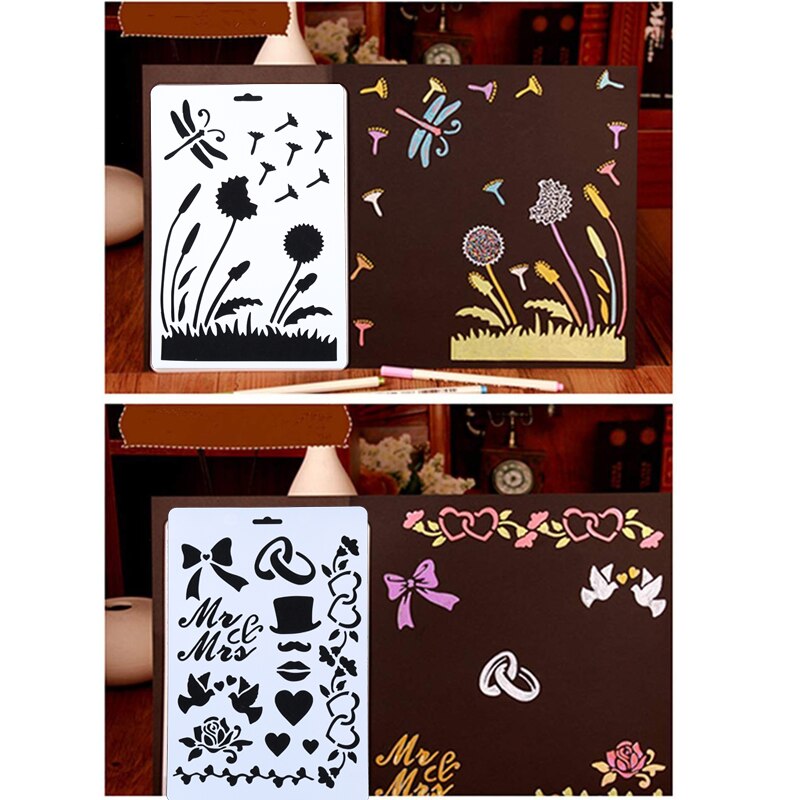 10Pcs Drawing Painting Stencils Scale Template Set 8.3 X 11.7 inch, Plastic Shape Scrapbook Stencils Graphics Stencils for Child
