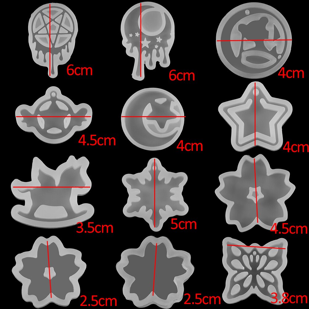 12 Styles Epoxy Resin Silicone Mold Star Moon Snowflake Necklace Earring Pendant DIY Handmade Jewelry Making Accessory Findings