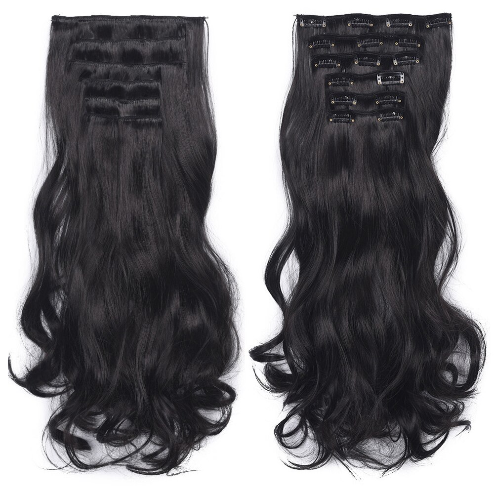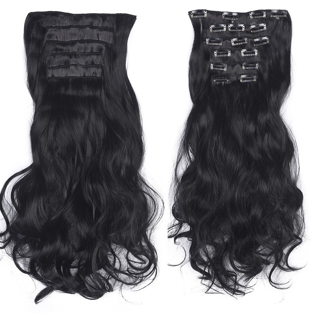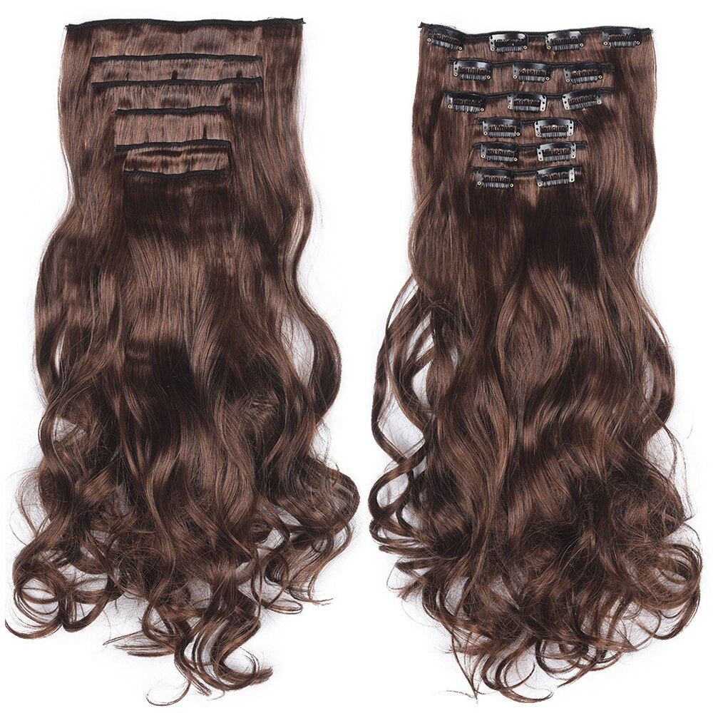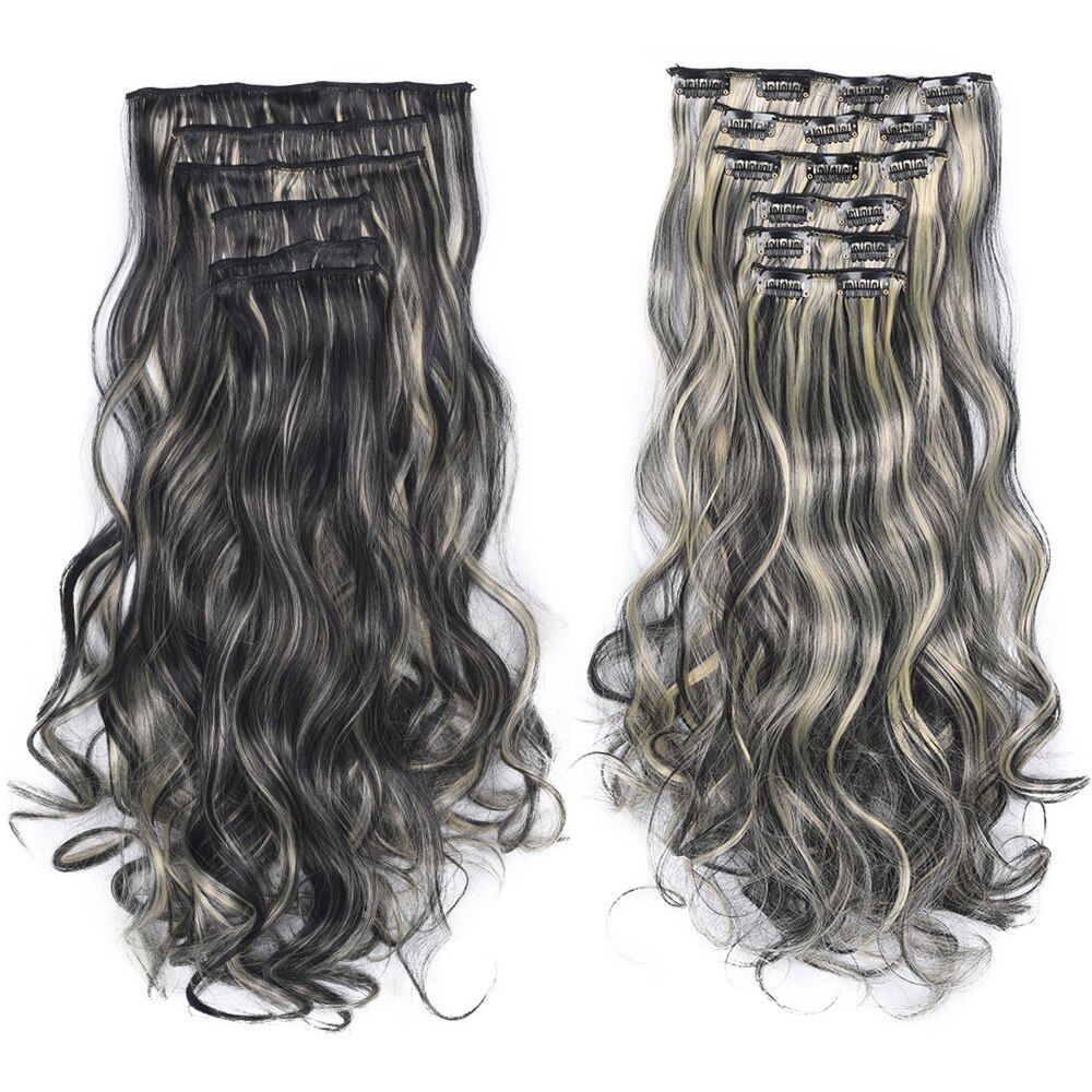 22" 16 Clips Synthetic Body Wave Clip In Hair Extensions Long Curly Heat Resistant Hairpiece Ombre Hair For Women