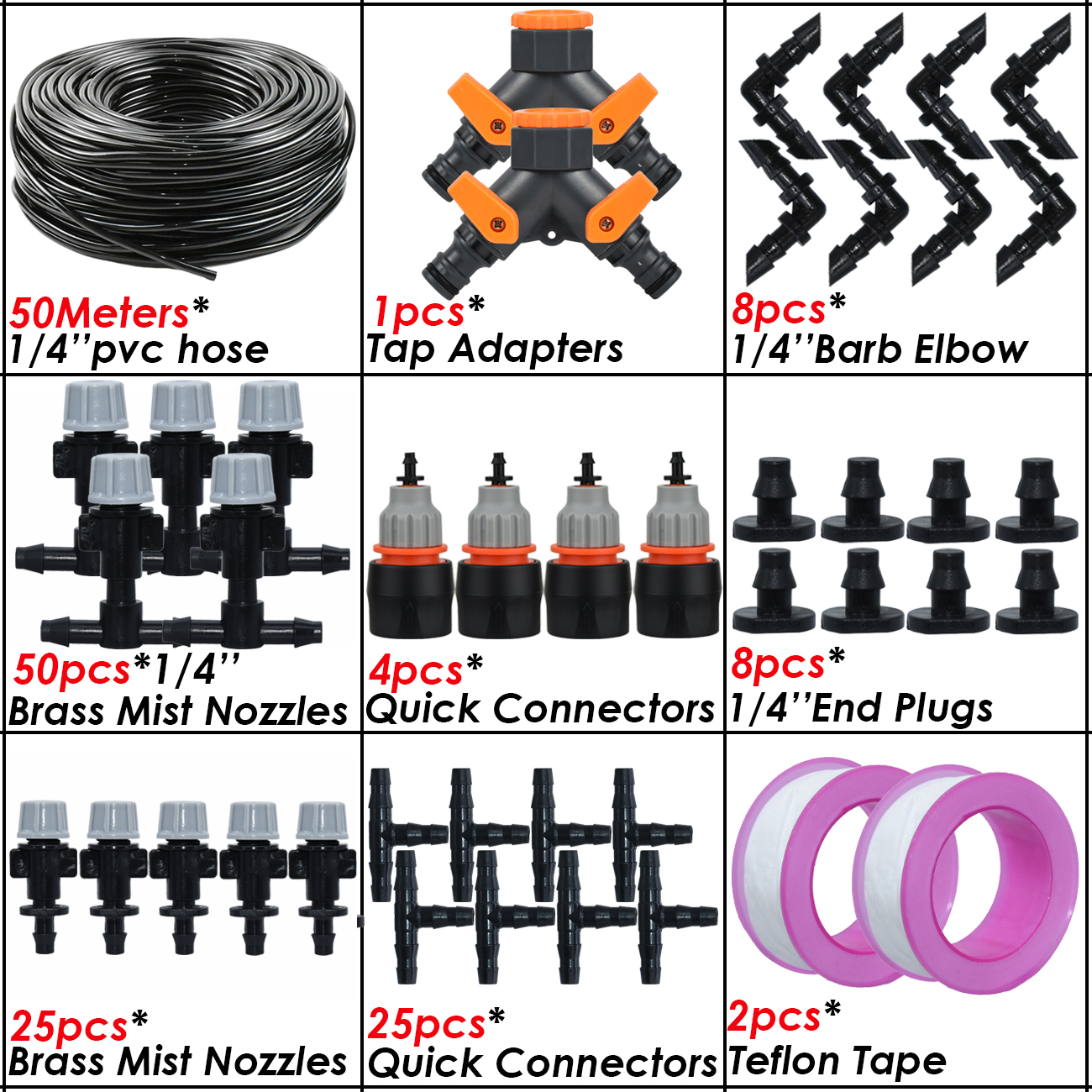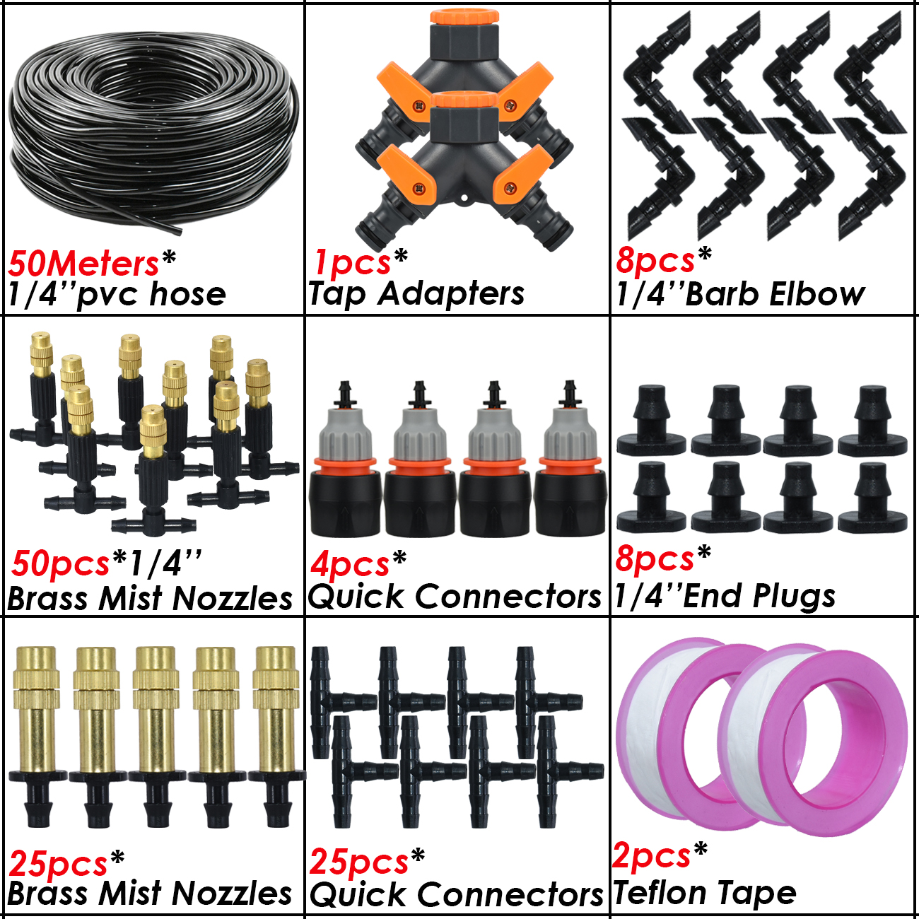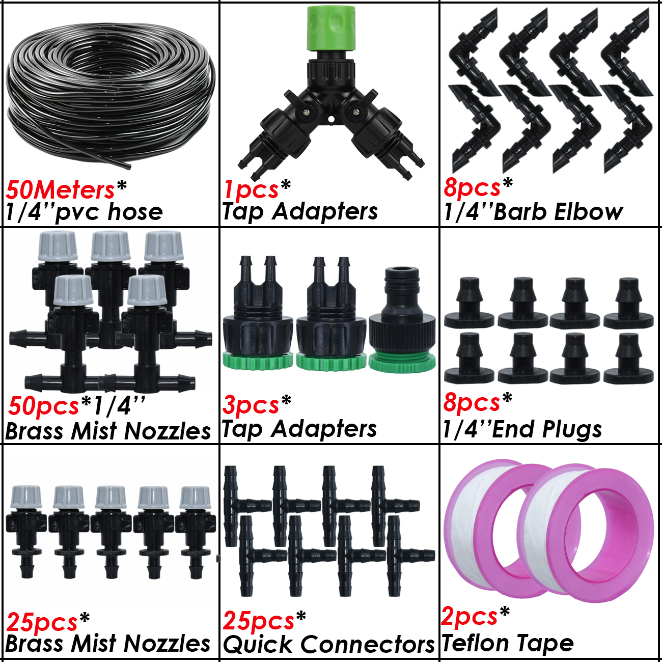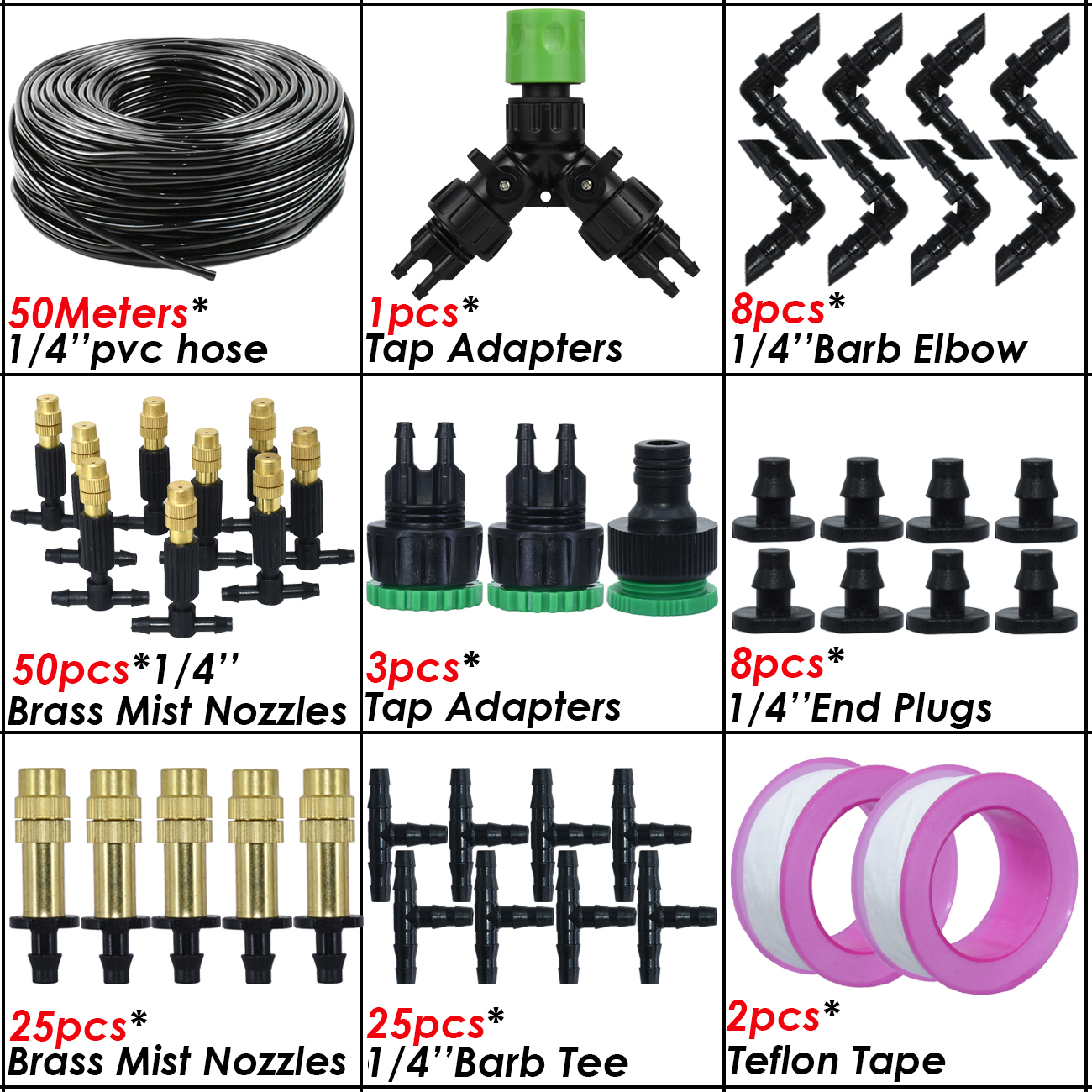 5M-50M Garden Misting Cooling System 1/4'' Drip Irrigation Outdoor Watering Brass Atomizer Nozzles 4/7mm Hose Greenhouse Parasol
