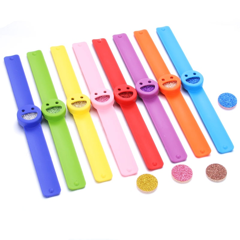 8 Colors 1pcs Smile Face Silicone Slap Bracelets Essential Oils Diffuser Wristband anti-mosquito for Kids