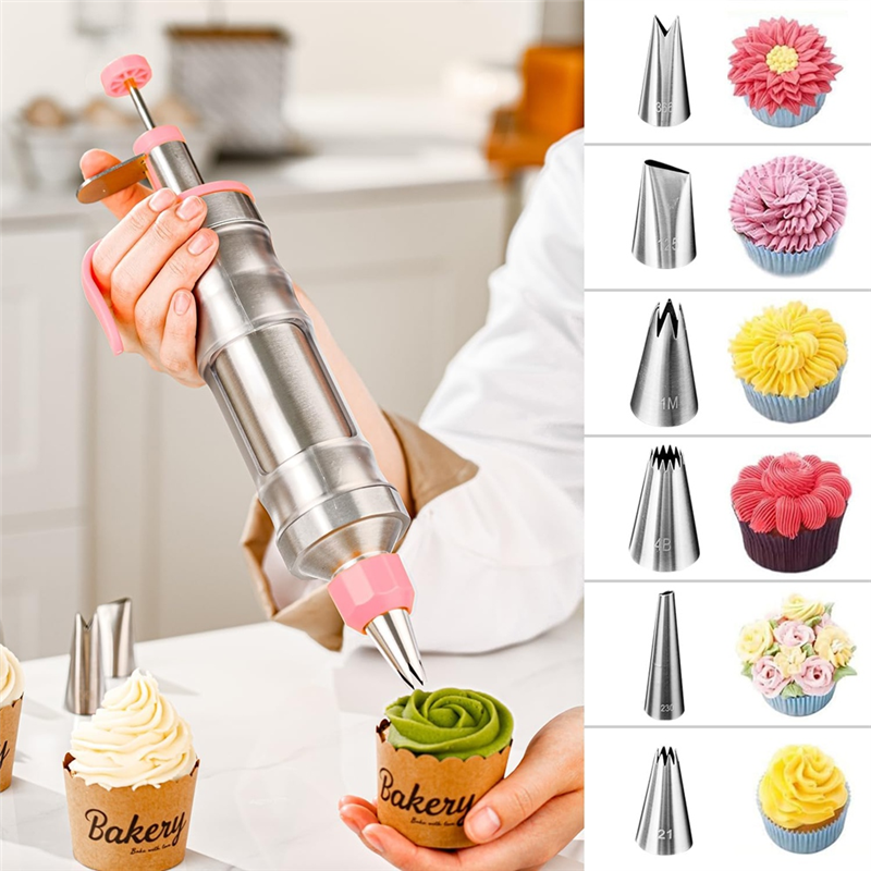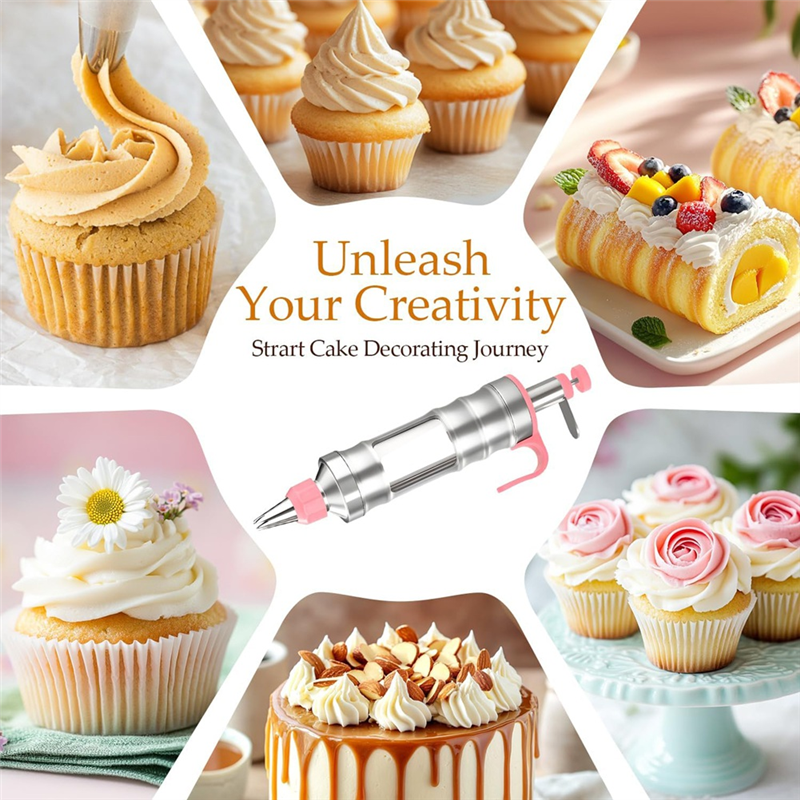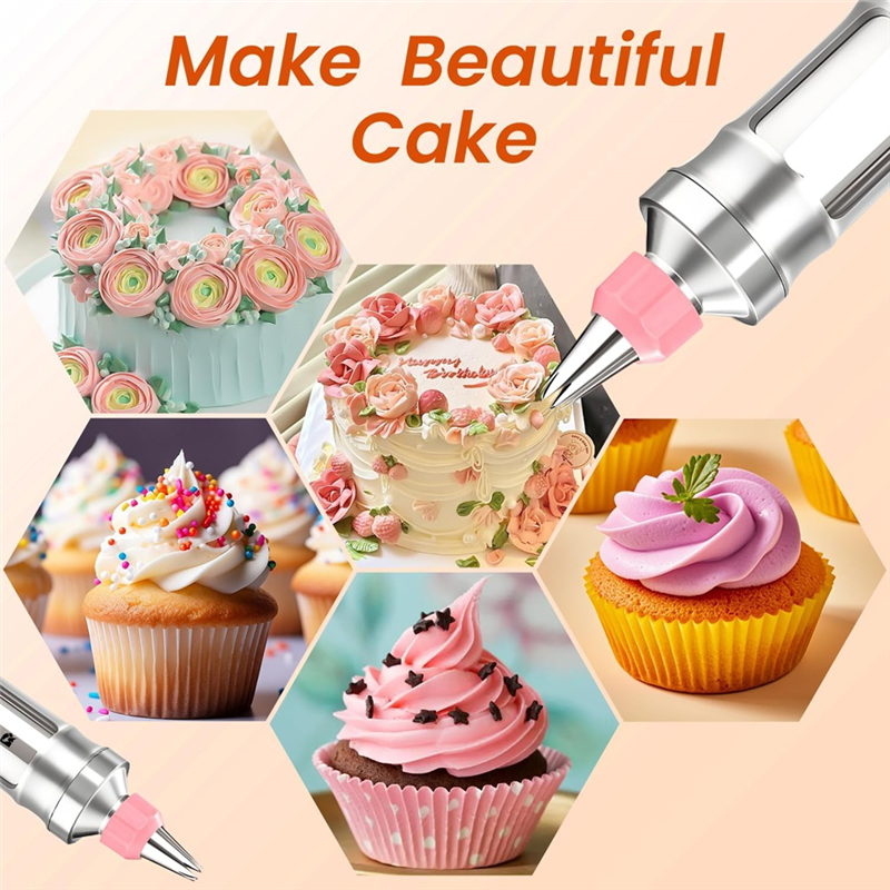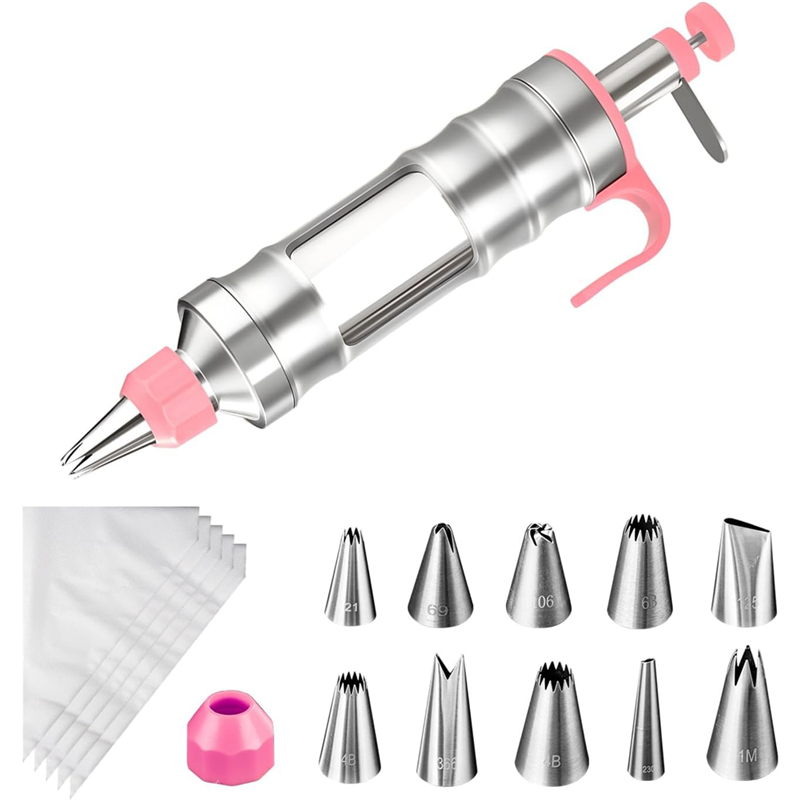 ABJN-Pink Cake Decorating Kit Dessert Set Featuring 10 Food Grade Stainless Steel Piping Tips And 50 Disposable Piping Bags