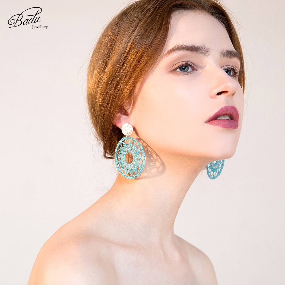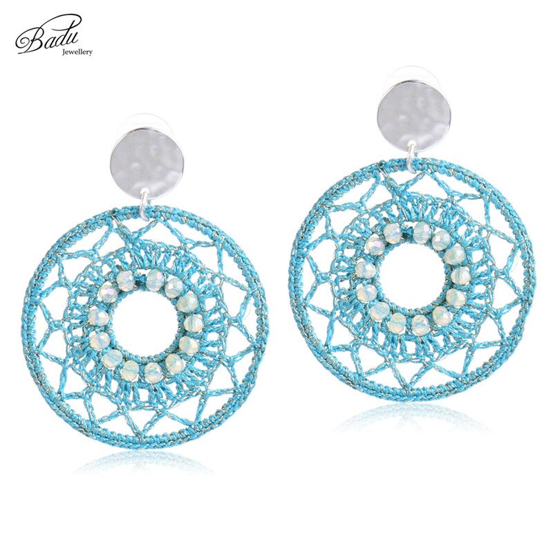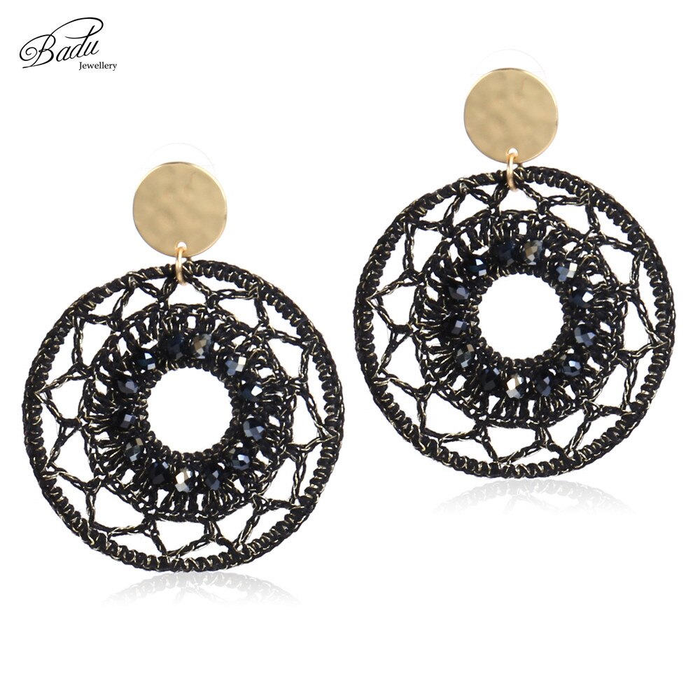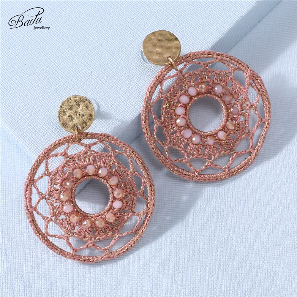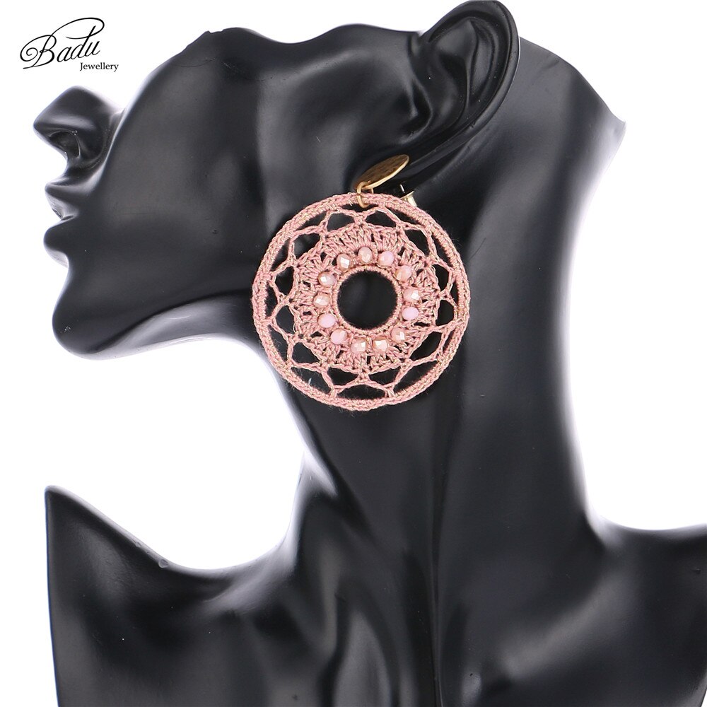 Badu Big Statement Round Crochet Earrings for Women Hollowing Crochet Drops Retro Dangle Earring for Christmas Jewelry