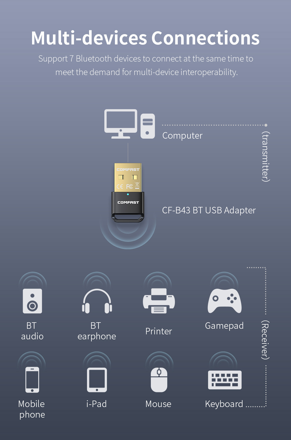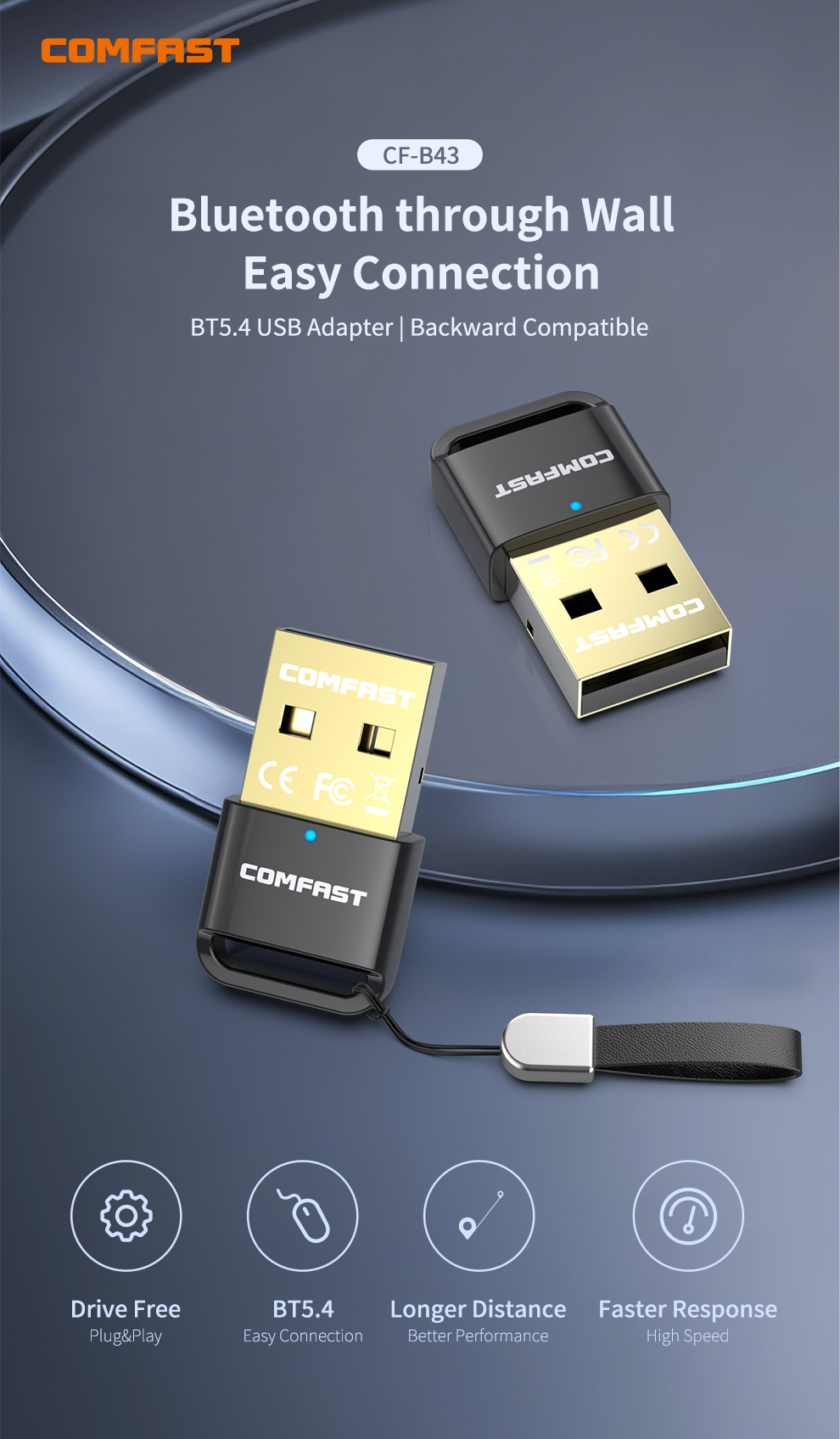 Comfast Bluetooth 5.4 Adapter Adaptador Cle USB Bluetooth 5.3 Dongle for PC Speaker Wireless Mouse Keyboard Music Audio Receiver