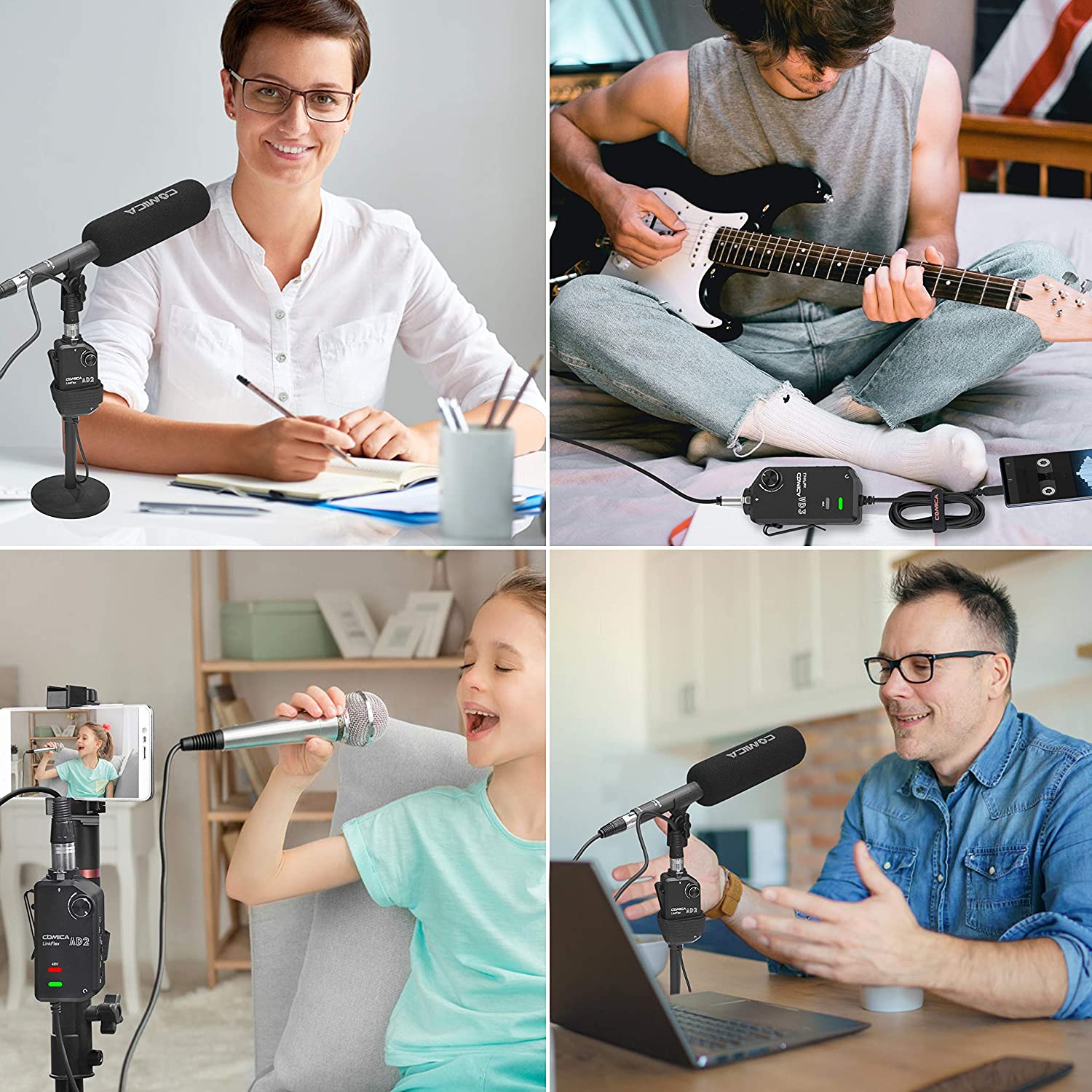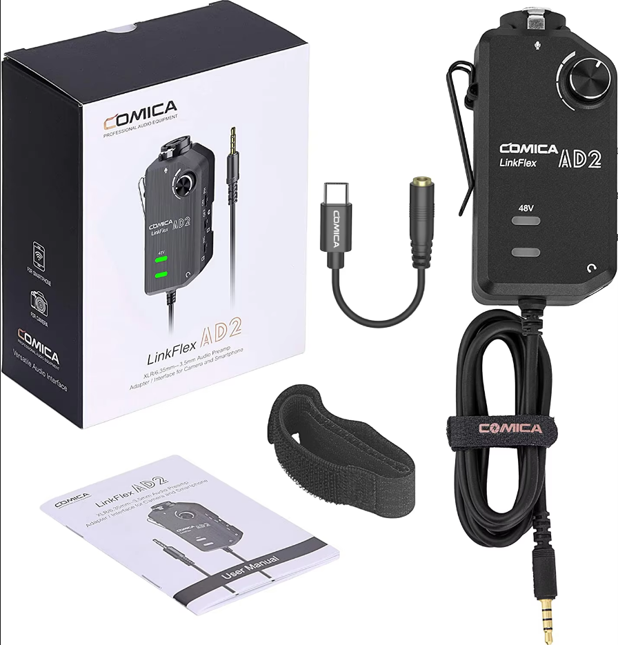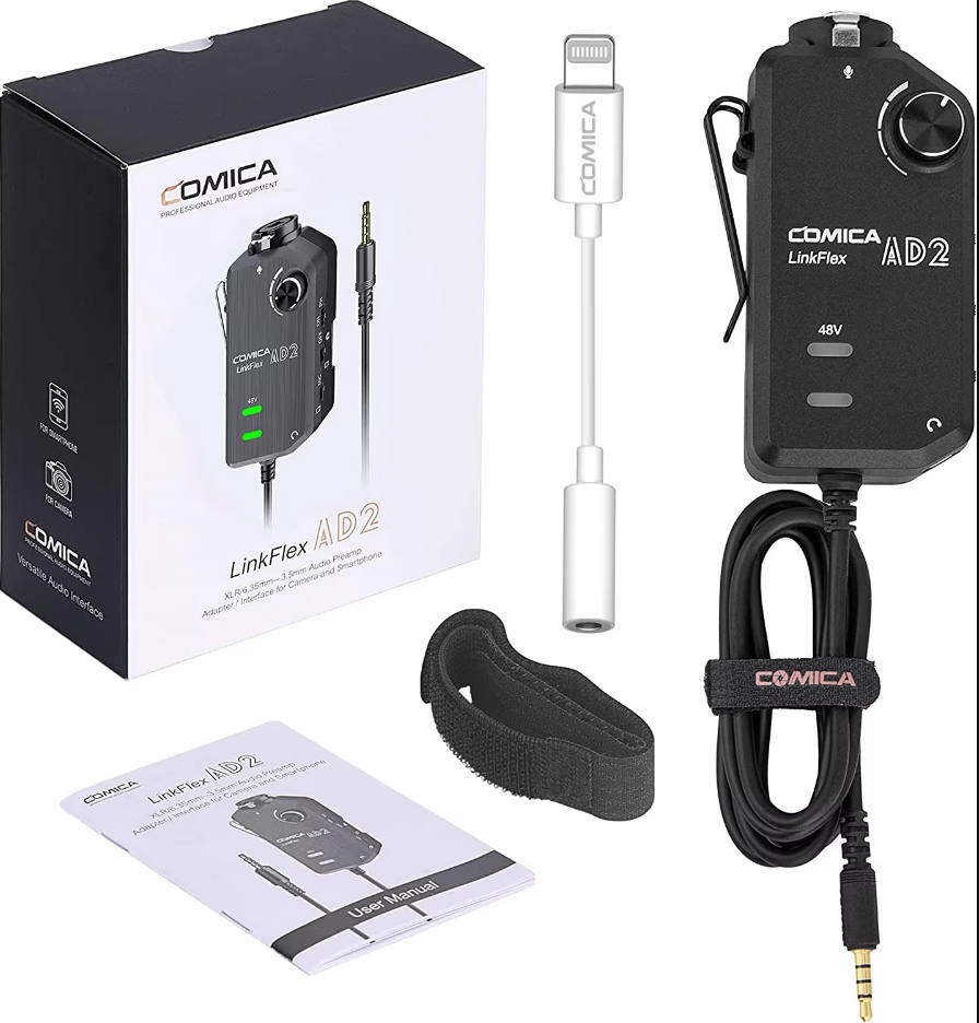 Comica LINKFLEX AD2 Audio Interface for iPhone Android Smartphones/DSLR Cameras, Audio Preamp Adapter with 48V Phantom Power