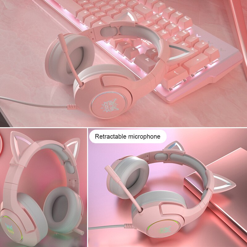 Cute Cat Ear Headphone K9 Pink Wired Game Cat Ear Headset With Mic Gaming Music And Gaming Headset For PC Notebook Laptop