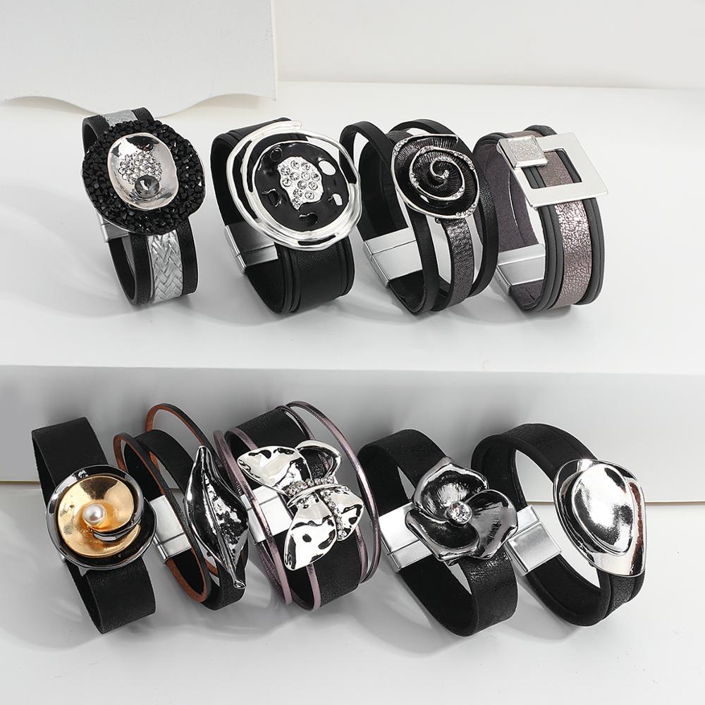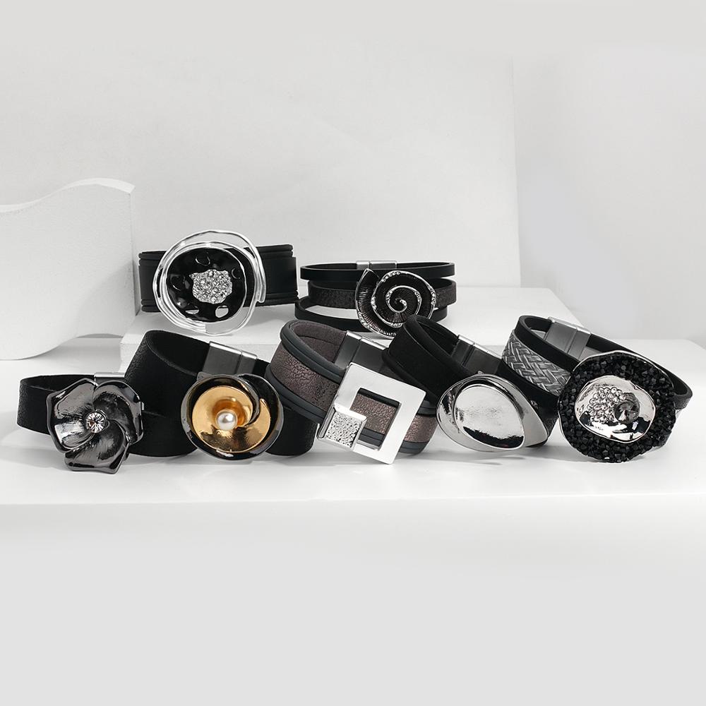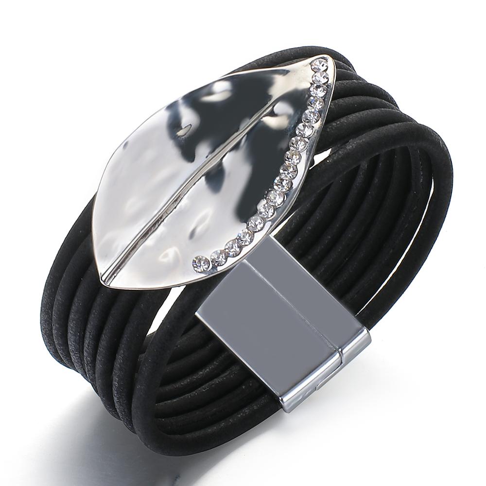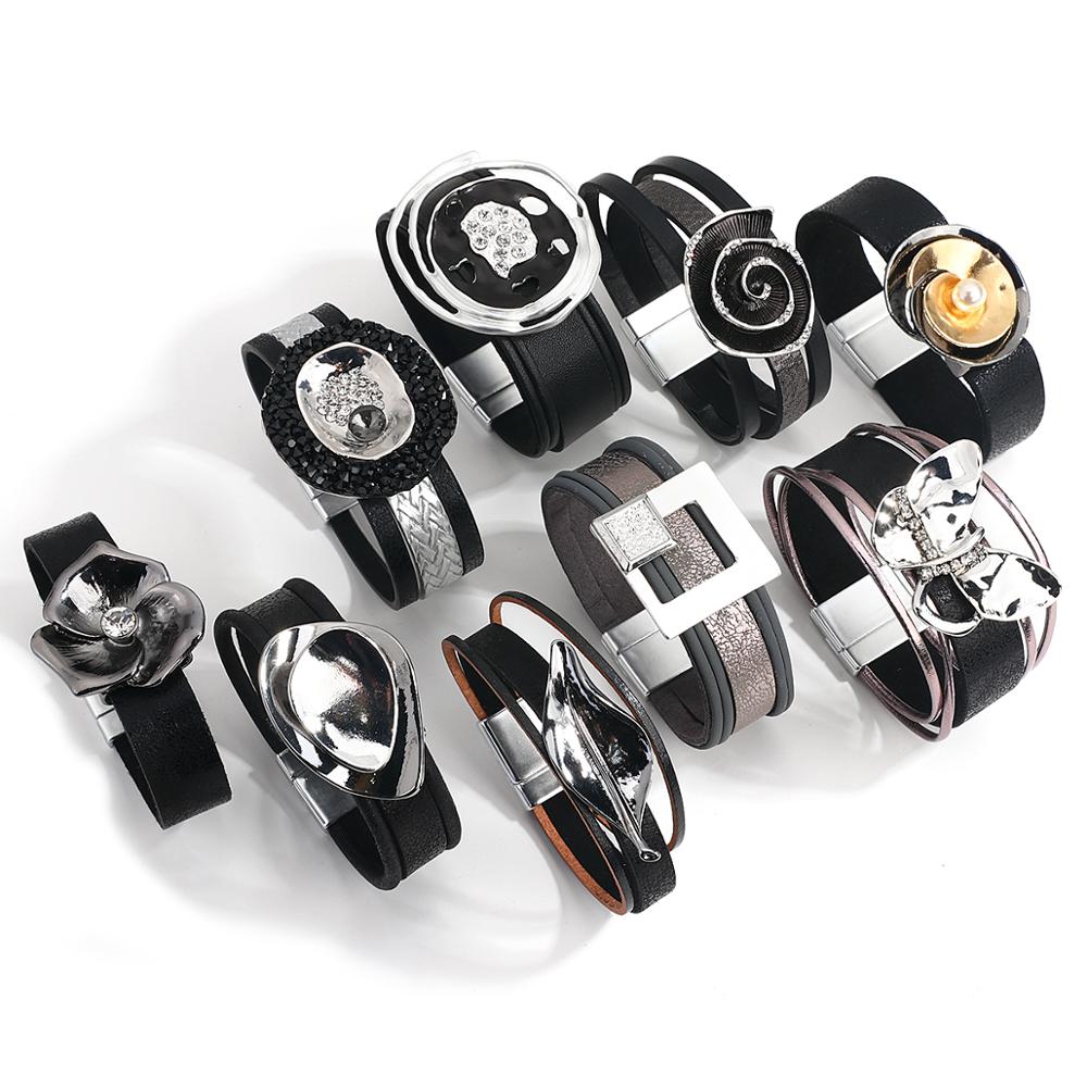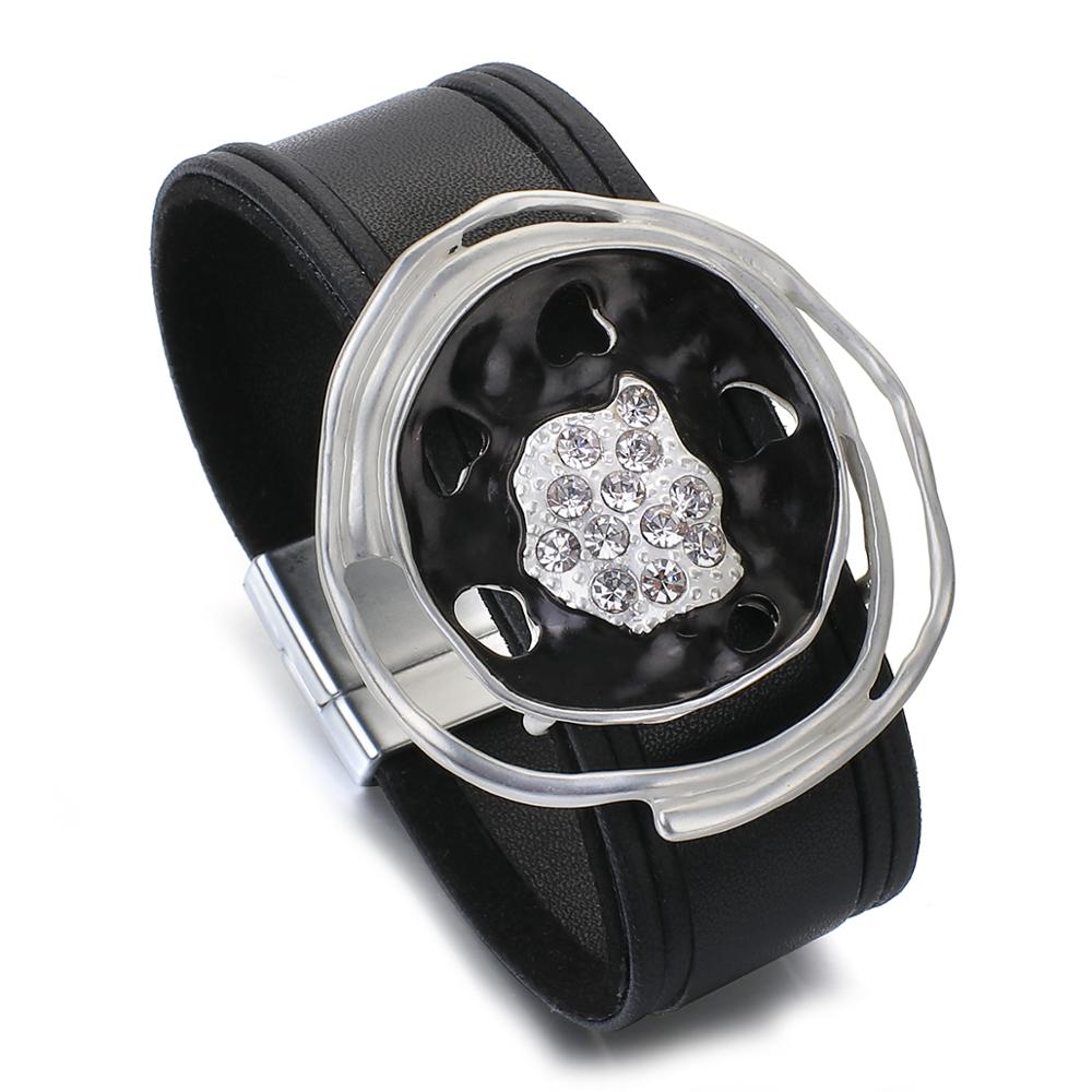 Flashbuy Boho Black Metal Leather Bracelets For Women Wide Wrap Bangles Party Jewelry