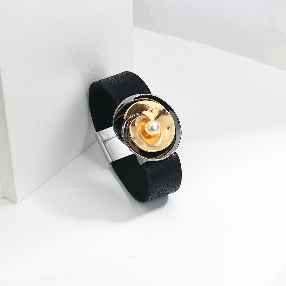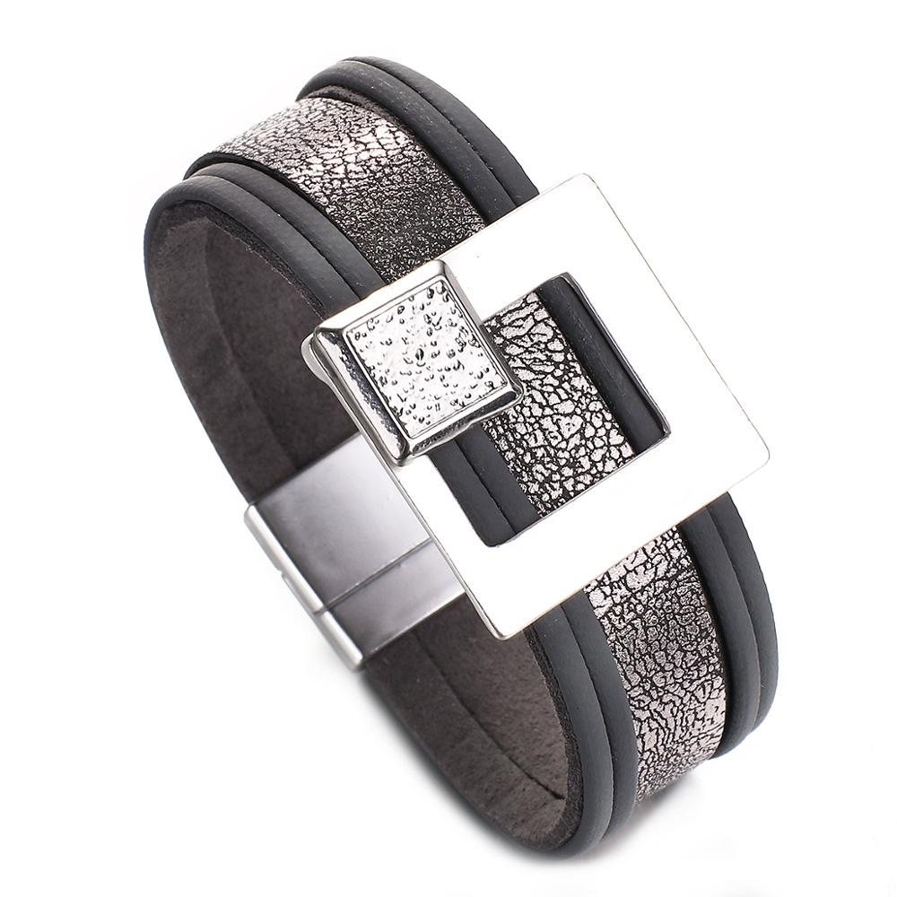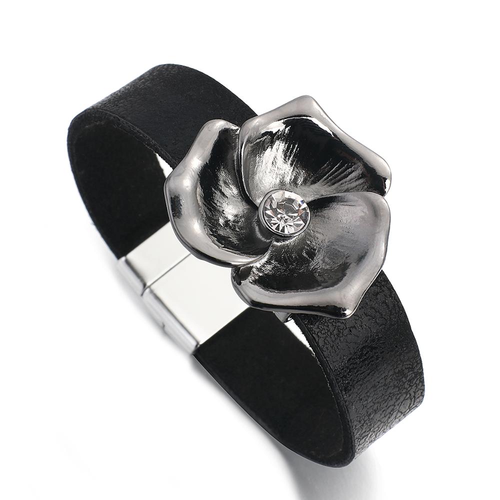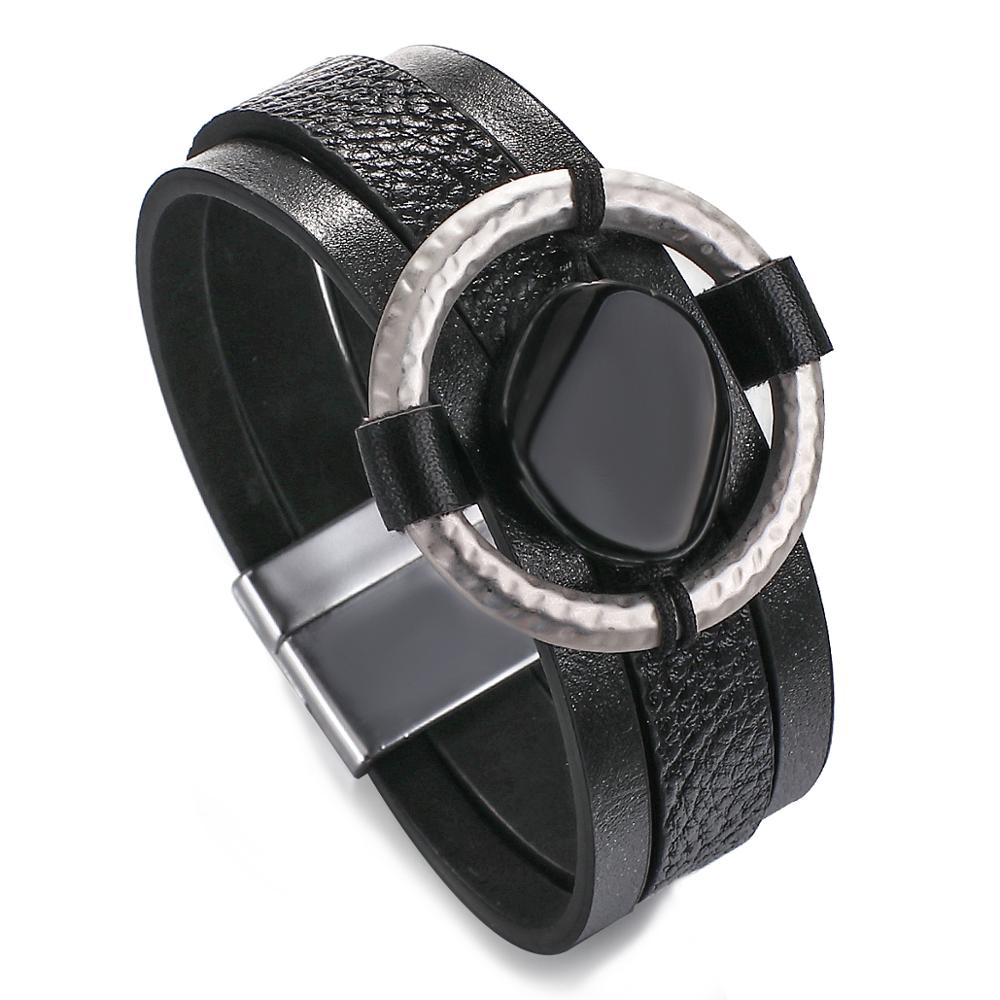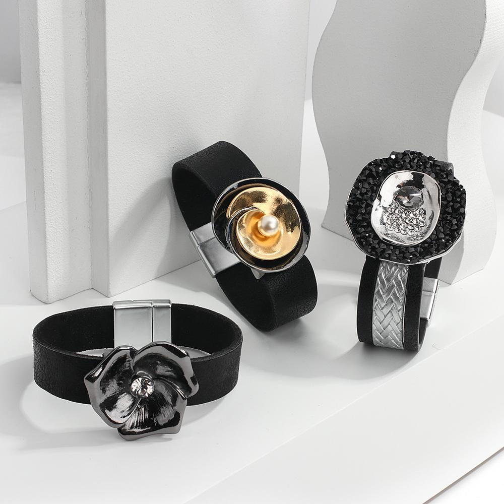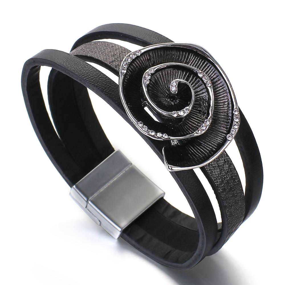Flashbuy Boho Black Metal Leather Bracelets For Women Wide Wrap Bangles Party Jewelry