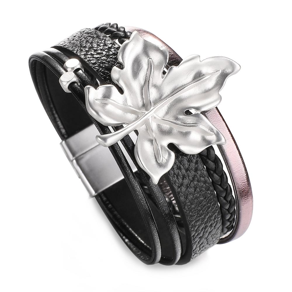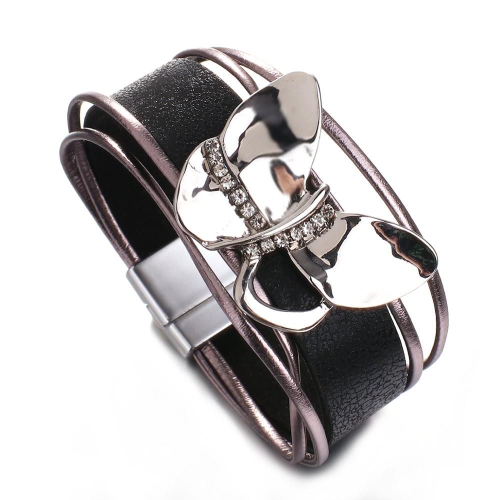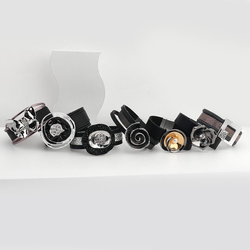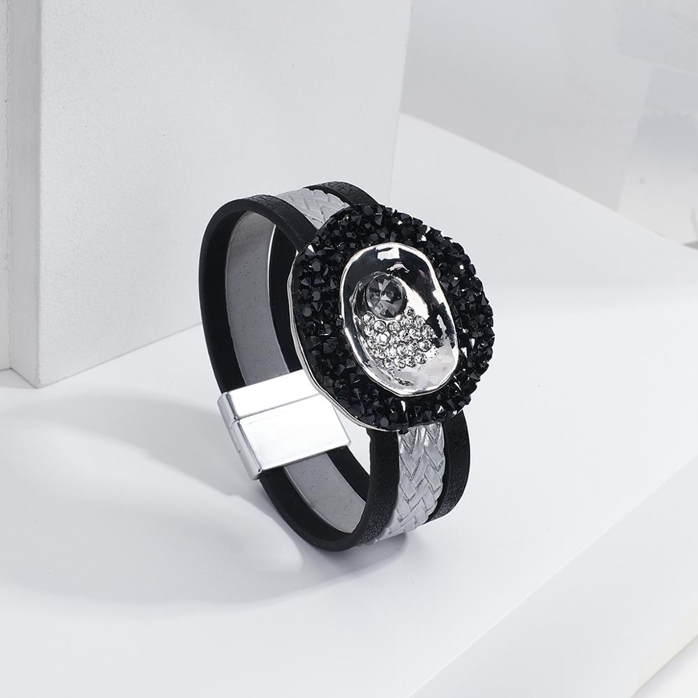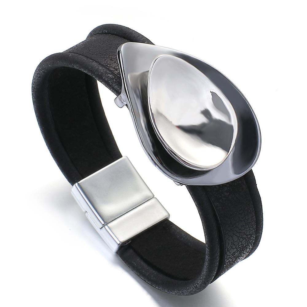 Flashbuy Boho Black Metal Leather Bracelets For Women Wide Wrap Bangles Party Jewelry