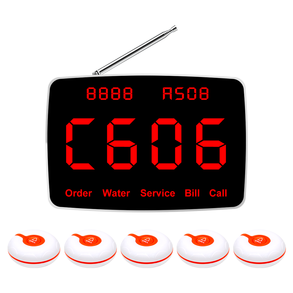 JINGLE BELLS Wireless Calling System 5 Pcs CTT25 Call Buttons for Bar,Restaurant,Office,Cafe Customer Call waiter Service Bell