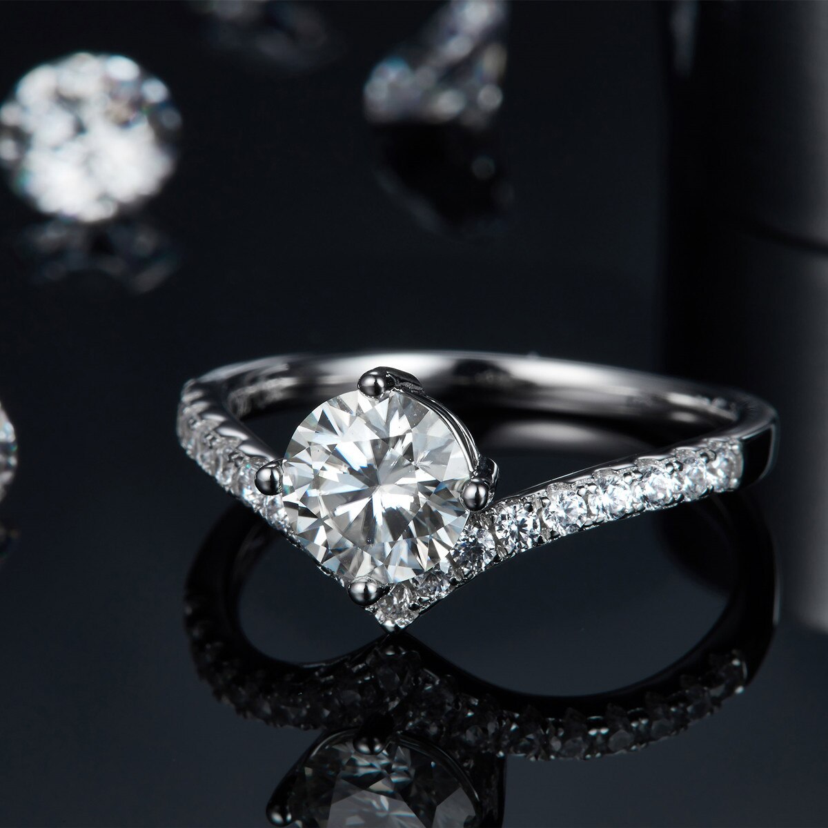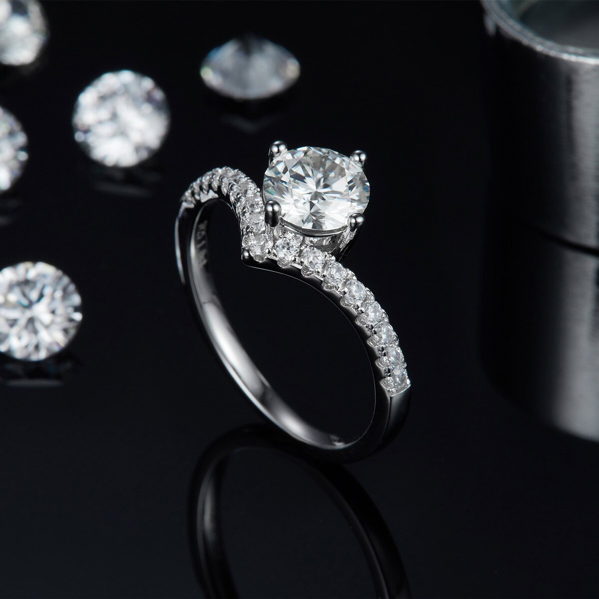 JoyceJelly 925 Sterling Silver women wedding jewelry ring 1 carat mossanties 4 claws rings unique V shaped