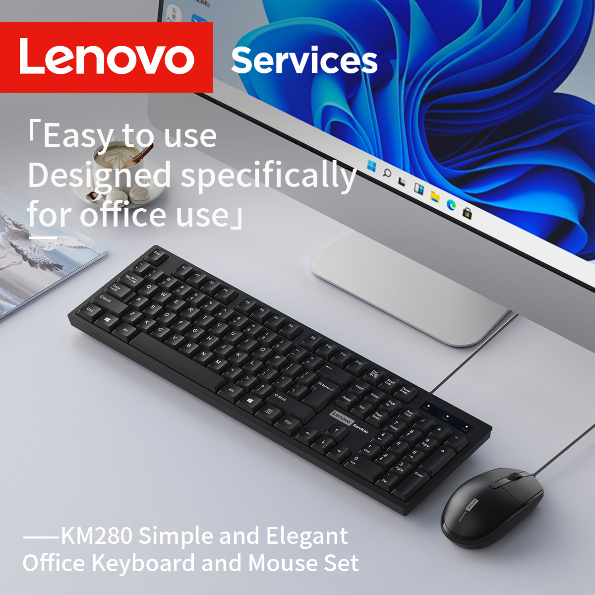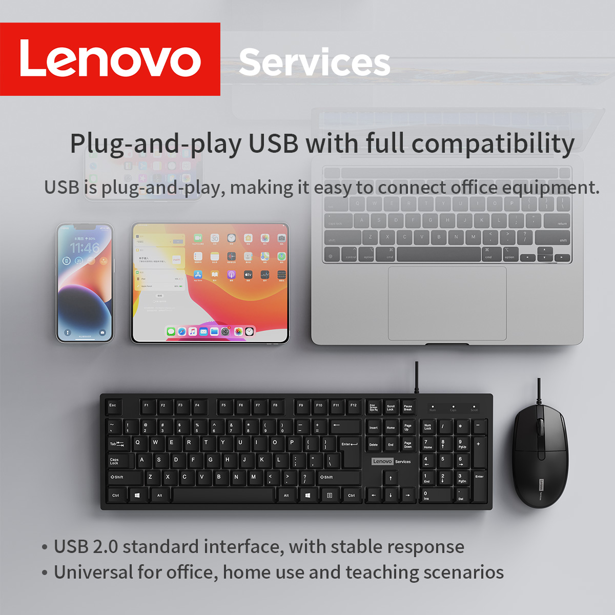 Lenovo Wired Keyboard and Mouse Set Classic Black Office Set Business Office Home Keyboard and Mouse 104 Key Layout Desktop Laptop Universal