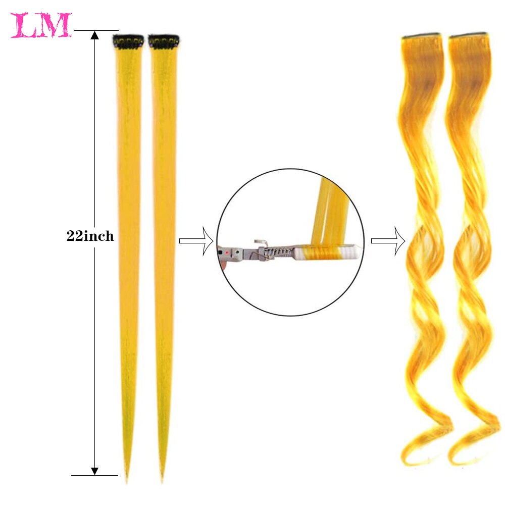 LM Long Straight Rainbow HairPiece Hair Extensions Clip In Hair Streak Pink Synthetic Hair Piece Strands on Clips