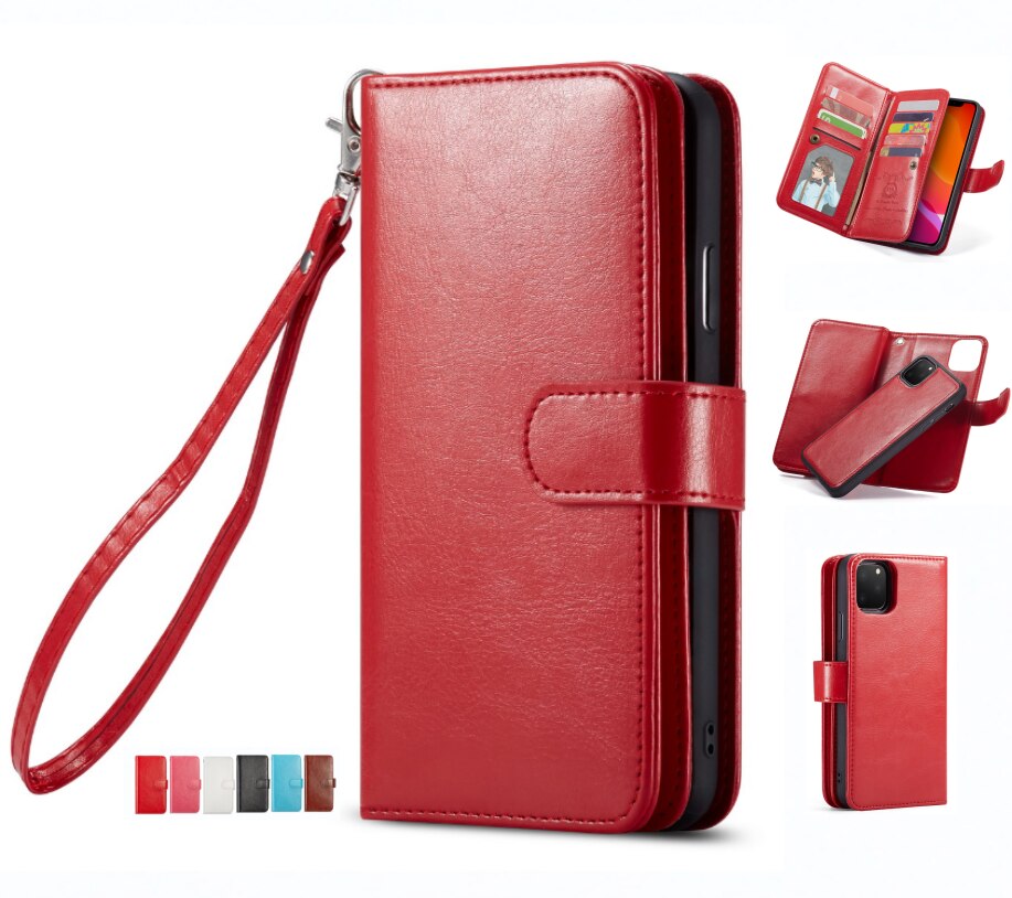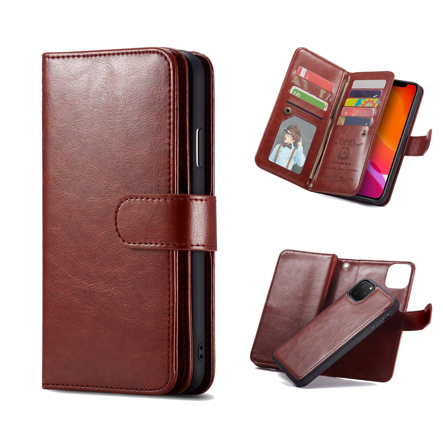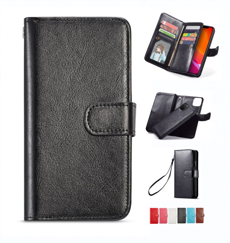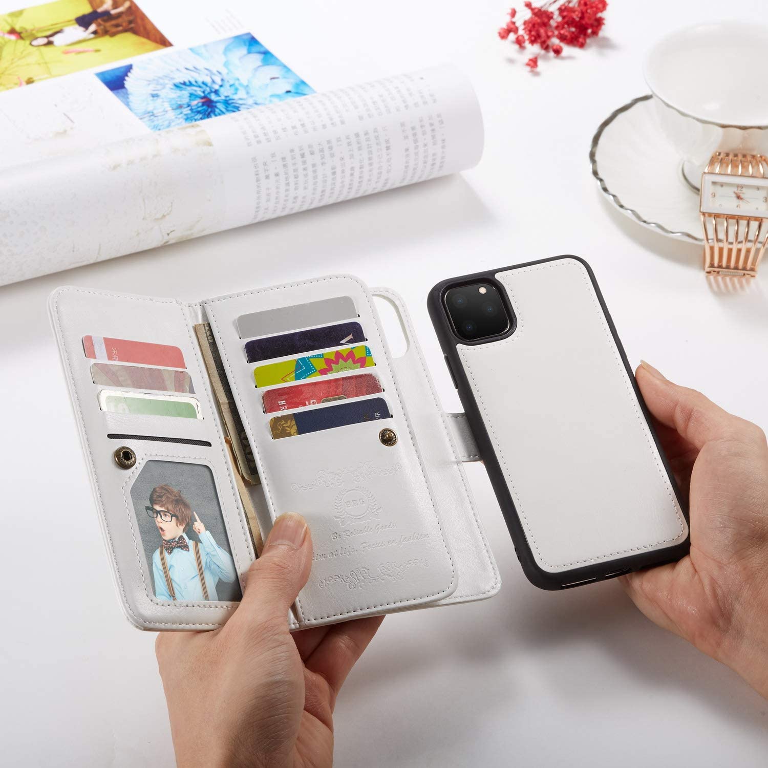 Locase Handbag Purse Stand Case for iPhone 11 6.1" Folio Flip Holster with 9 Card Holder Detachable Phone Case Removable Strap