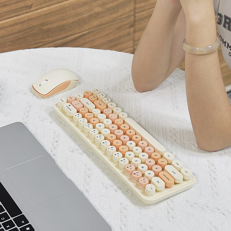 MOFII Wireless Keyboard and Mouse, Cute Colorful 68 Round Keycap Compact Keyboard for Computer, Computer, Desktop, Laptop