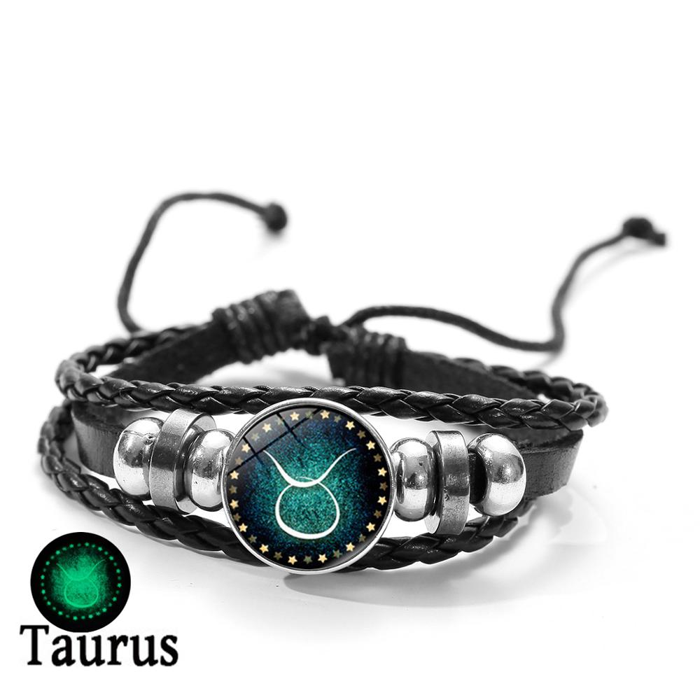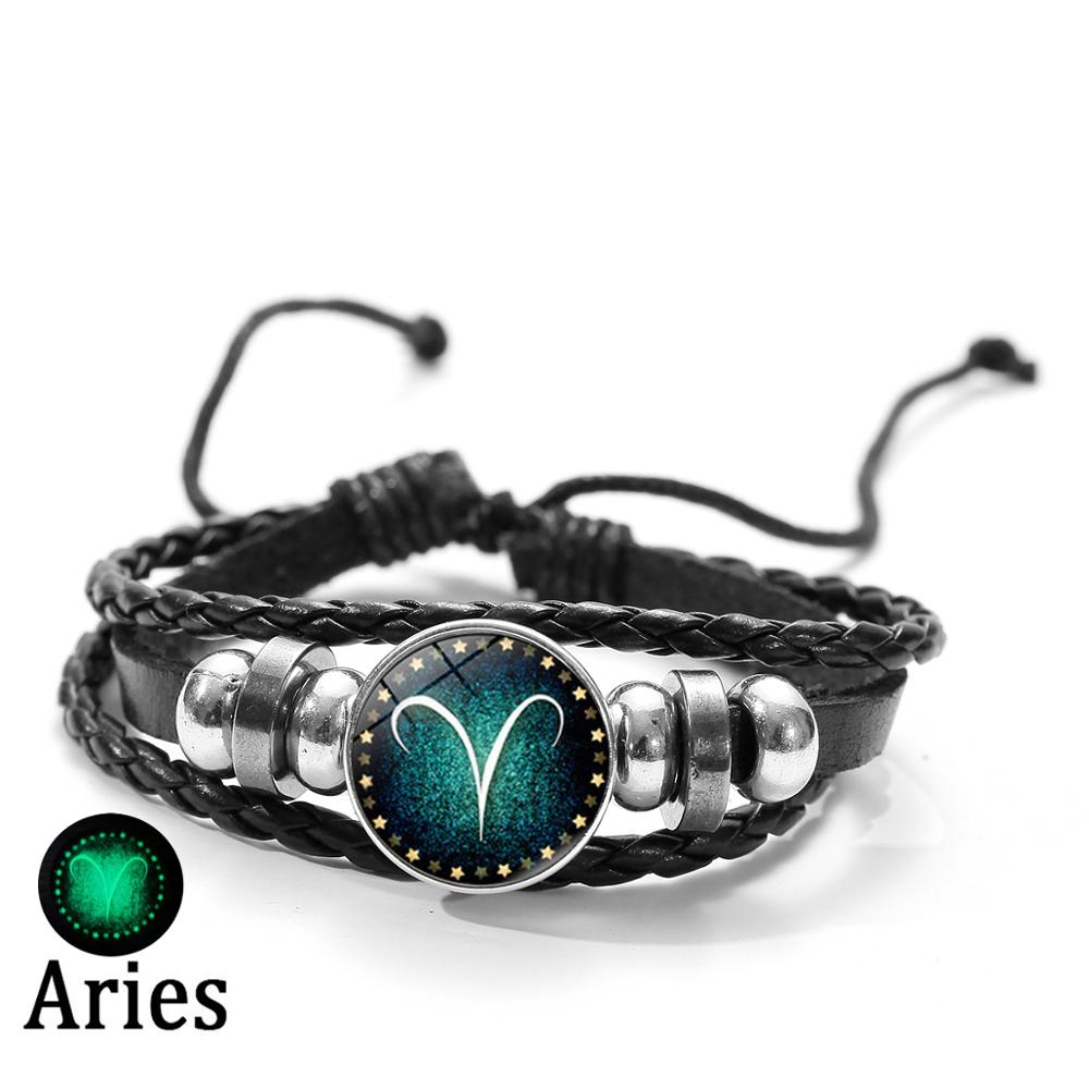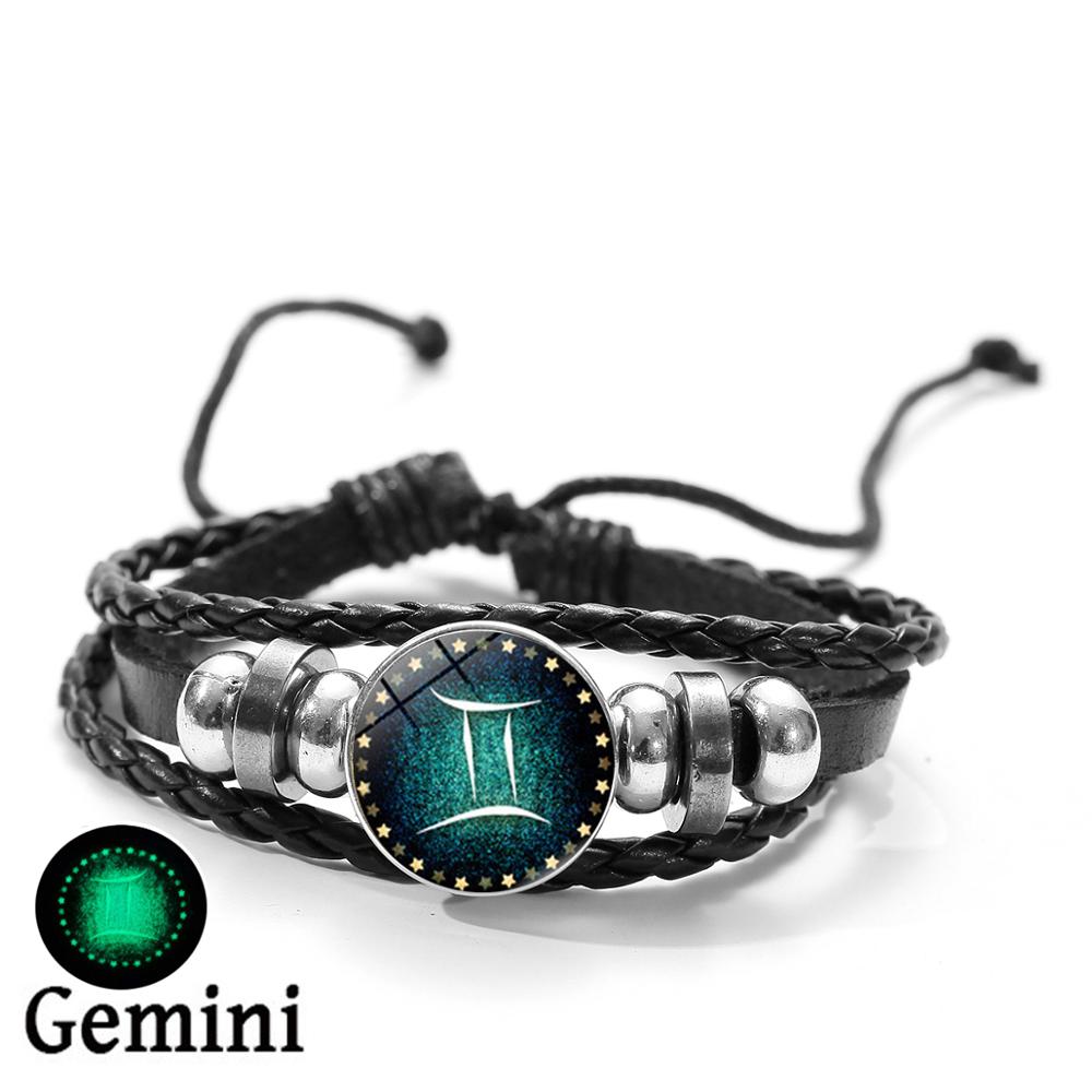SIAN Luminous Bracelet 12 Constellation Zodiac Signs Gemini Leo Virgo Charm Bracelets for Men Boy Lady Accessories