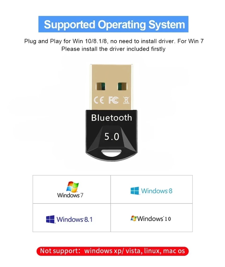 USB Bluetooth 5.0 Mini Bluetooth Adapter Receiver Wireless Bluetooth Dongle 5.0 Adapter for PC Laptop Desktop BT Transmitter