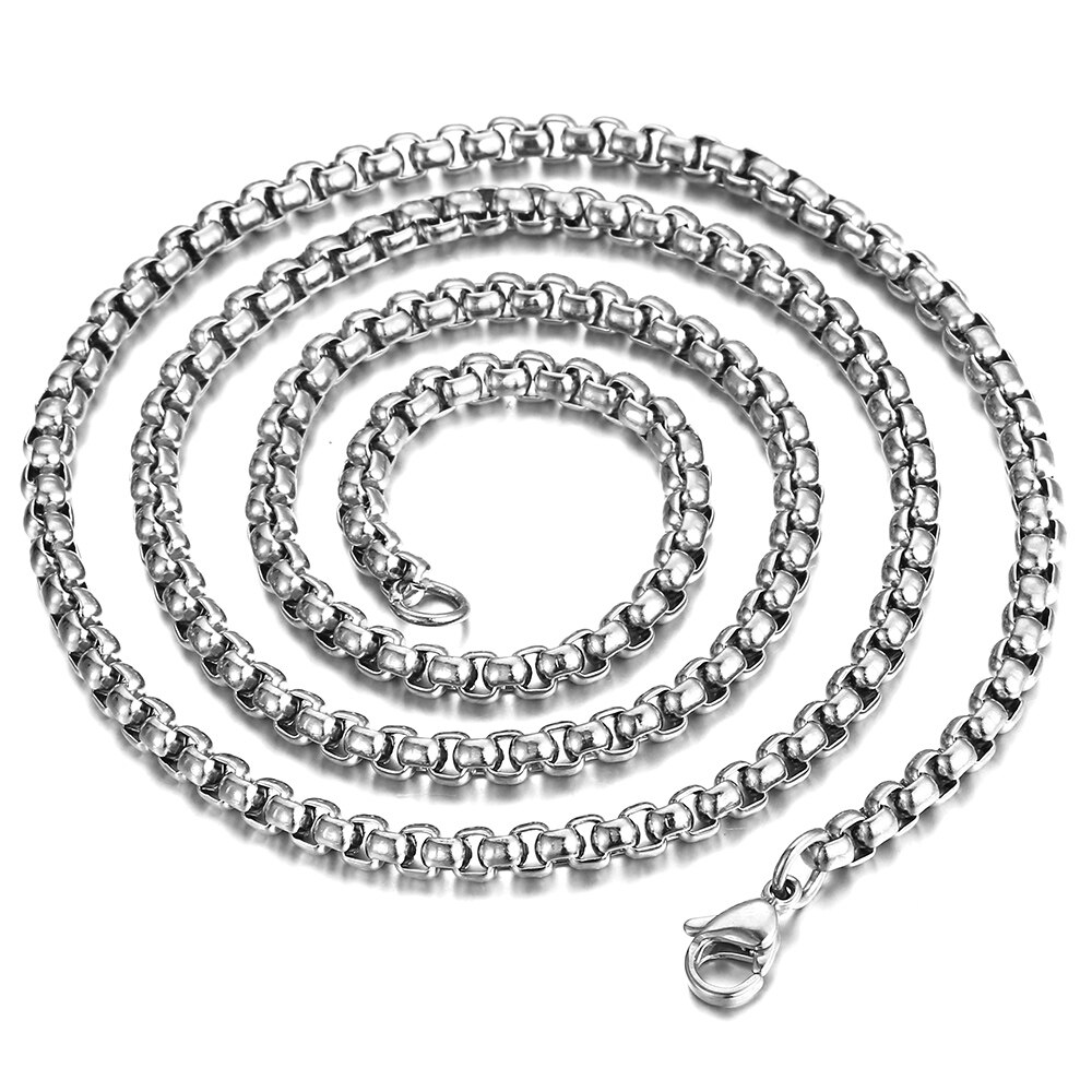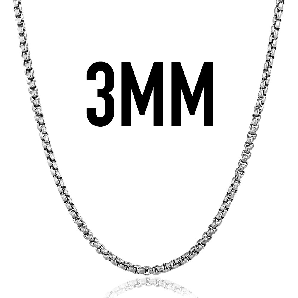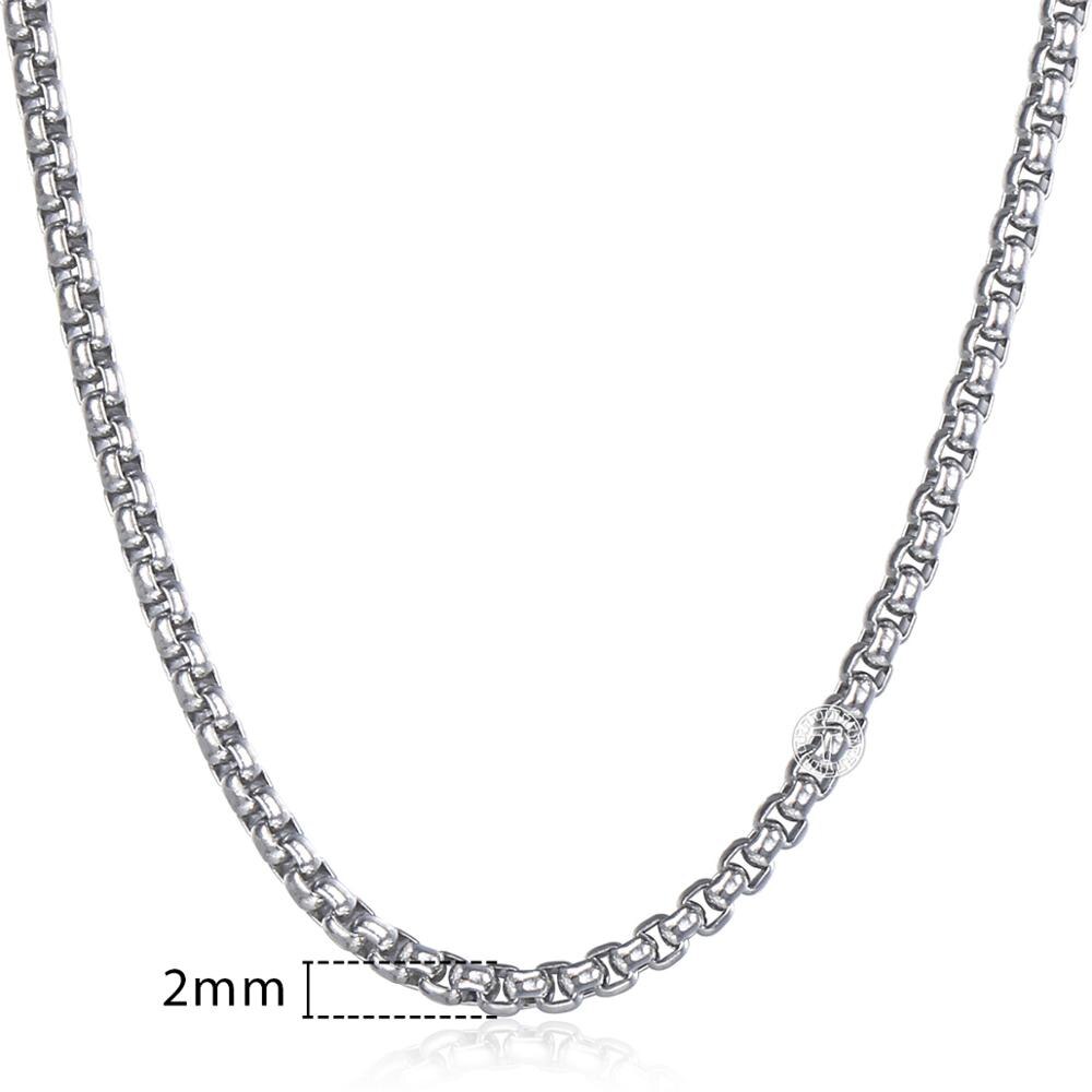Width 2mm/3mm/4mm Round Box Link Chain for Mens Women Silver Color Stainless Steel Neckalce Never Fade Waterproof
