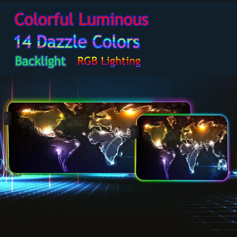 world map LED Color Luminous RGB Game Mouse Pad Large PC MousePad Desktop Pad USB Mause Pad with Backlight 40X90/30X35 CM